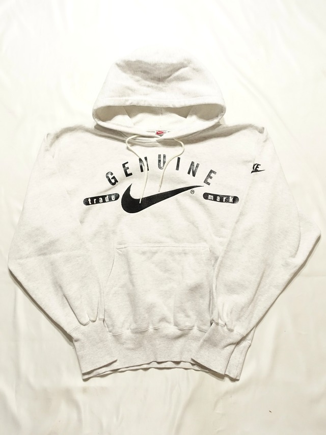 -Comment- 90年代、NIKEのプリントフーディ。 市場でもあまり見かけない「GENUINE trade mark.」のロゴが目を引く一着。 この年代特有のしっかりとしたスウェット生地。 主張しすぎないグレーのボディに、黒のロゴとアイコニックなスウッシュがプリントされており、シンプルながらも存在感があります。 -Size- Size:M 着丈 59cm 袖丈 60cm 身幅 59cm 肩幅53cm NO.2790 当店はPART OF TOWNのオリジナルアイテム、一点ずつセレクトした古着、ヴィンテージ品を展開しています。 Instagram @partoftown_vintageclothing 場所 群馬県伊勢崎市田中町78-1 東1F 営業時間 12:00-19:00