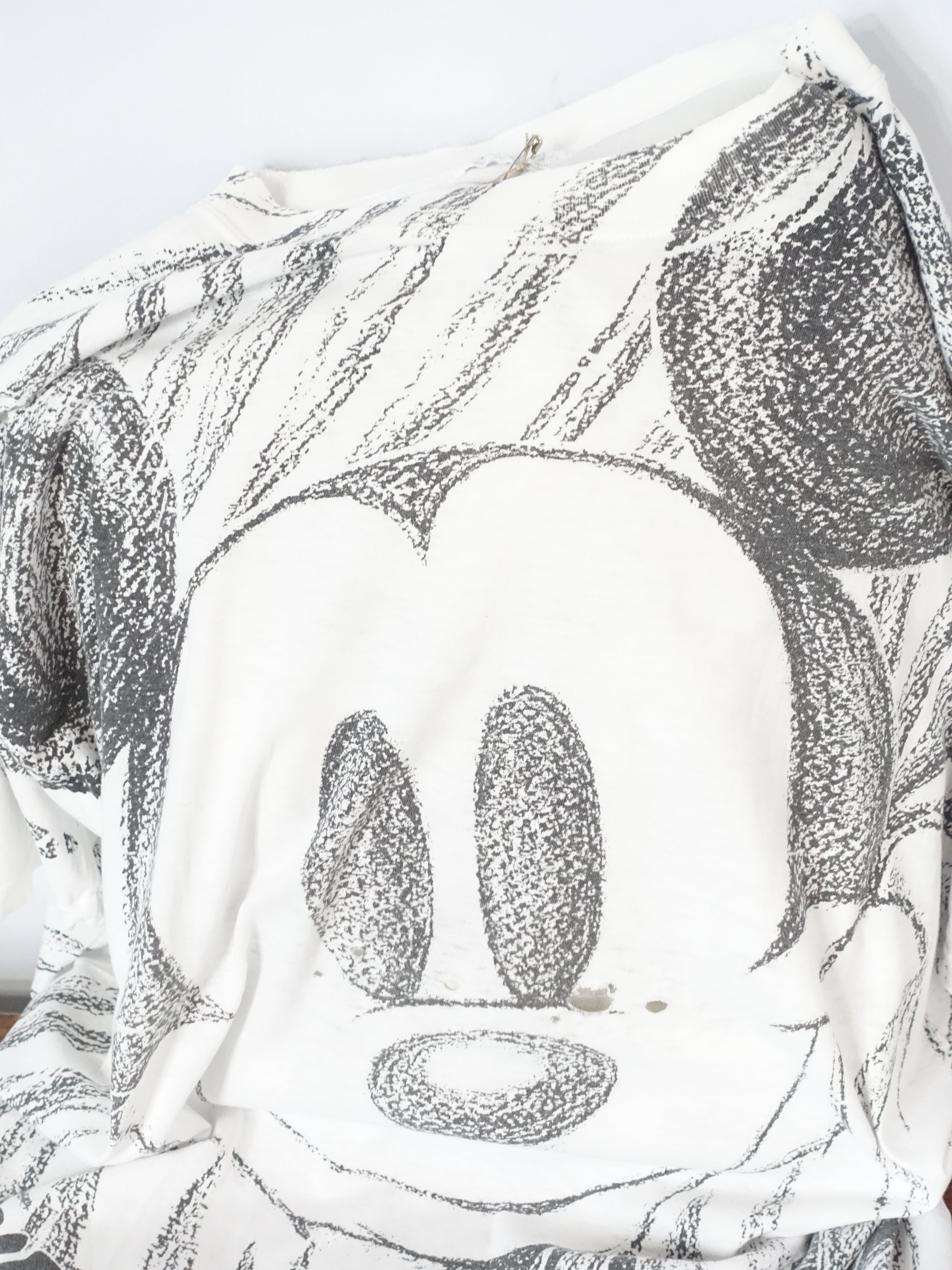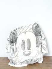 まるで鉛筆でスケッチしたかのようなテクスチャ感のあるタッチで、フロント・バックともに大胆にミッキーのフェイスを描いたアートピース的な一枚。