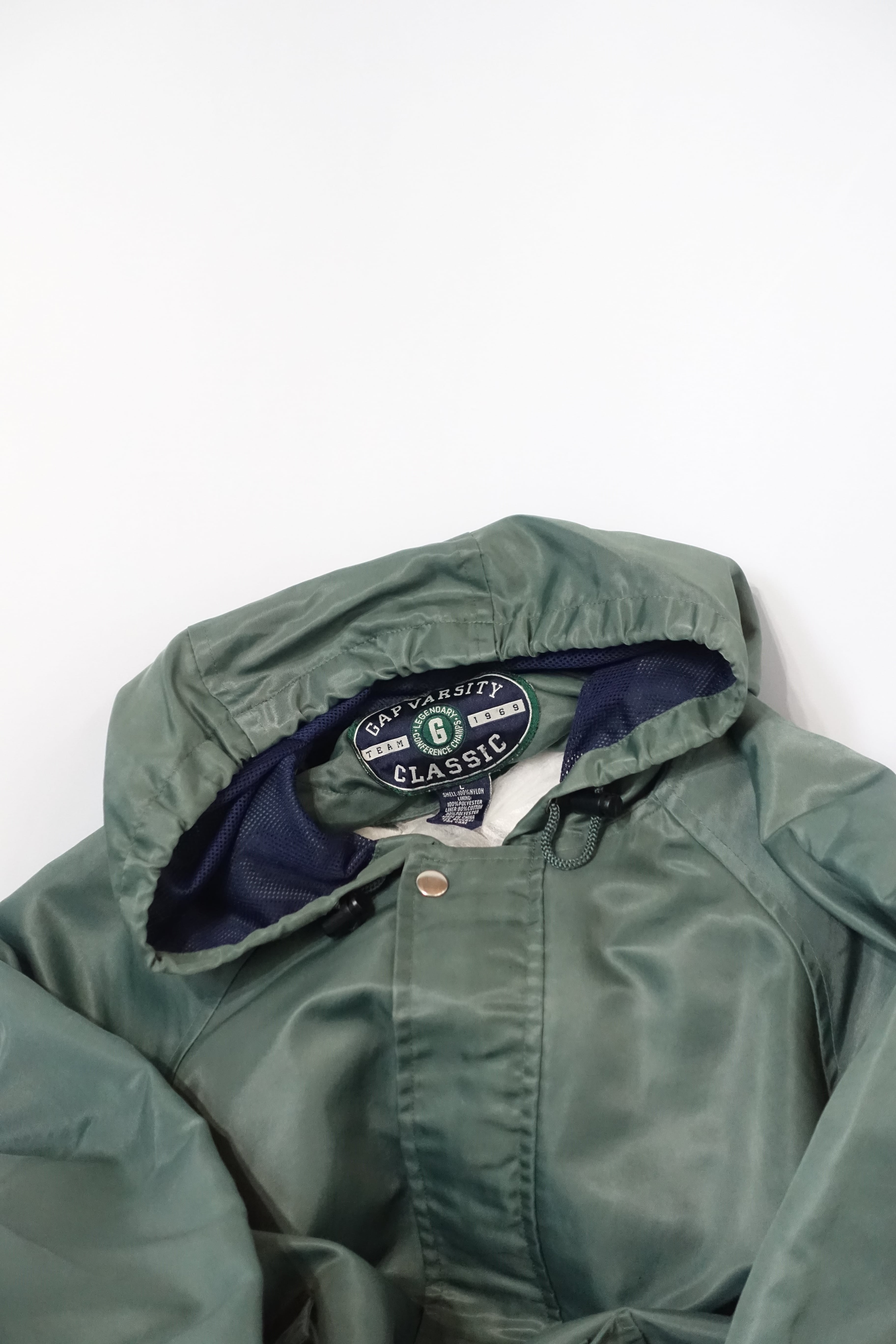 深みのあるオリーブグリーンが特徴的な、90年代GAPのミリタリージャケット。