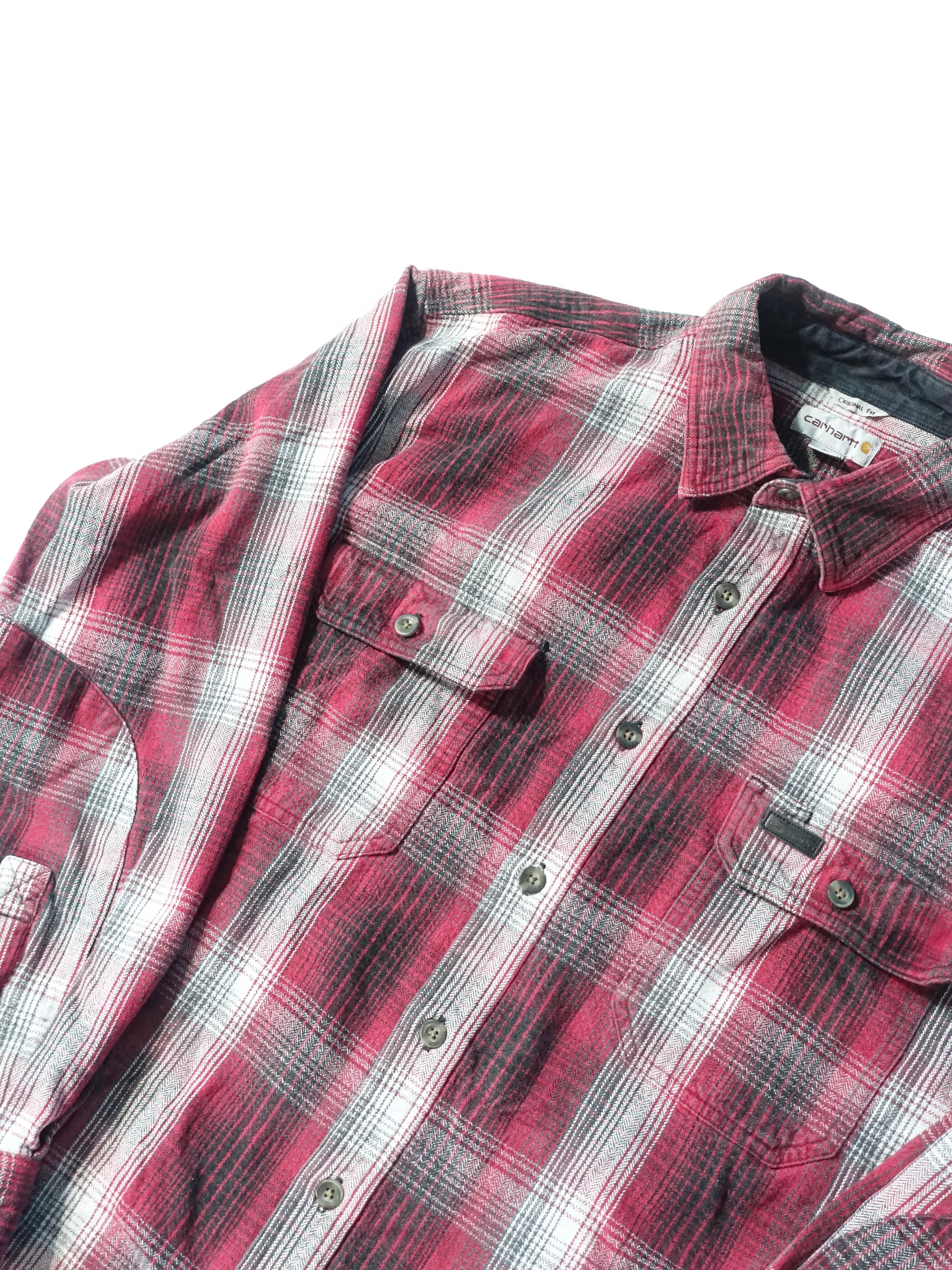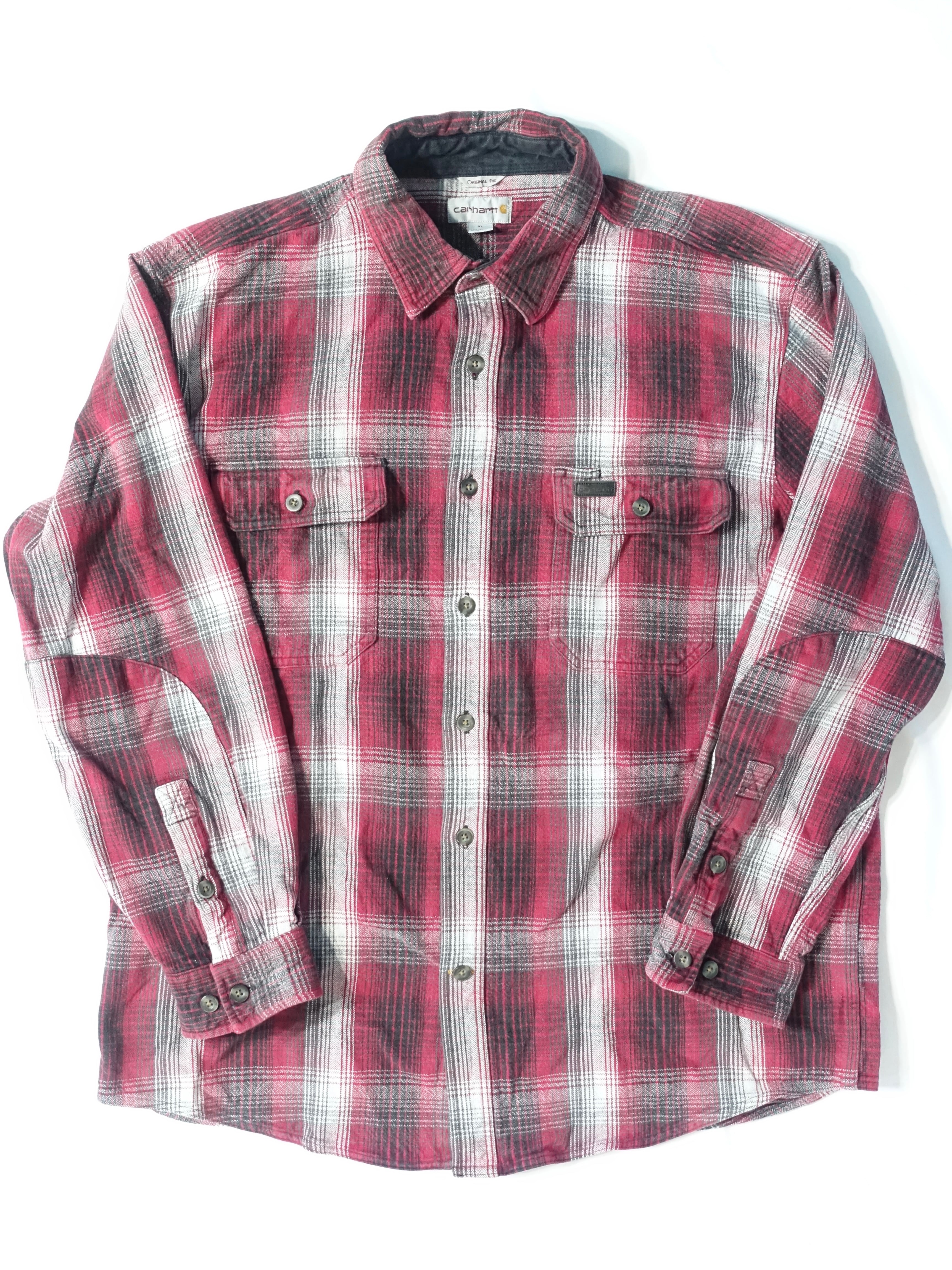 レッド × ブラック × ホワイトの大柄チェックは、ワークとアウトドア両方の文脈を持ち、当時のストリートカルチャーにも深く浸透。