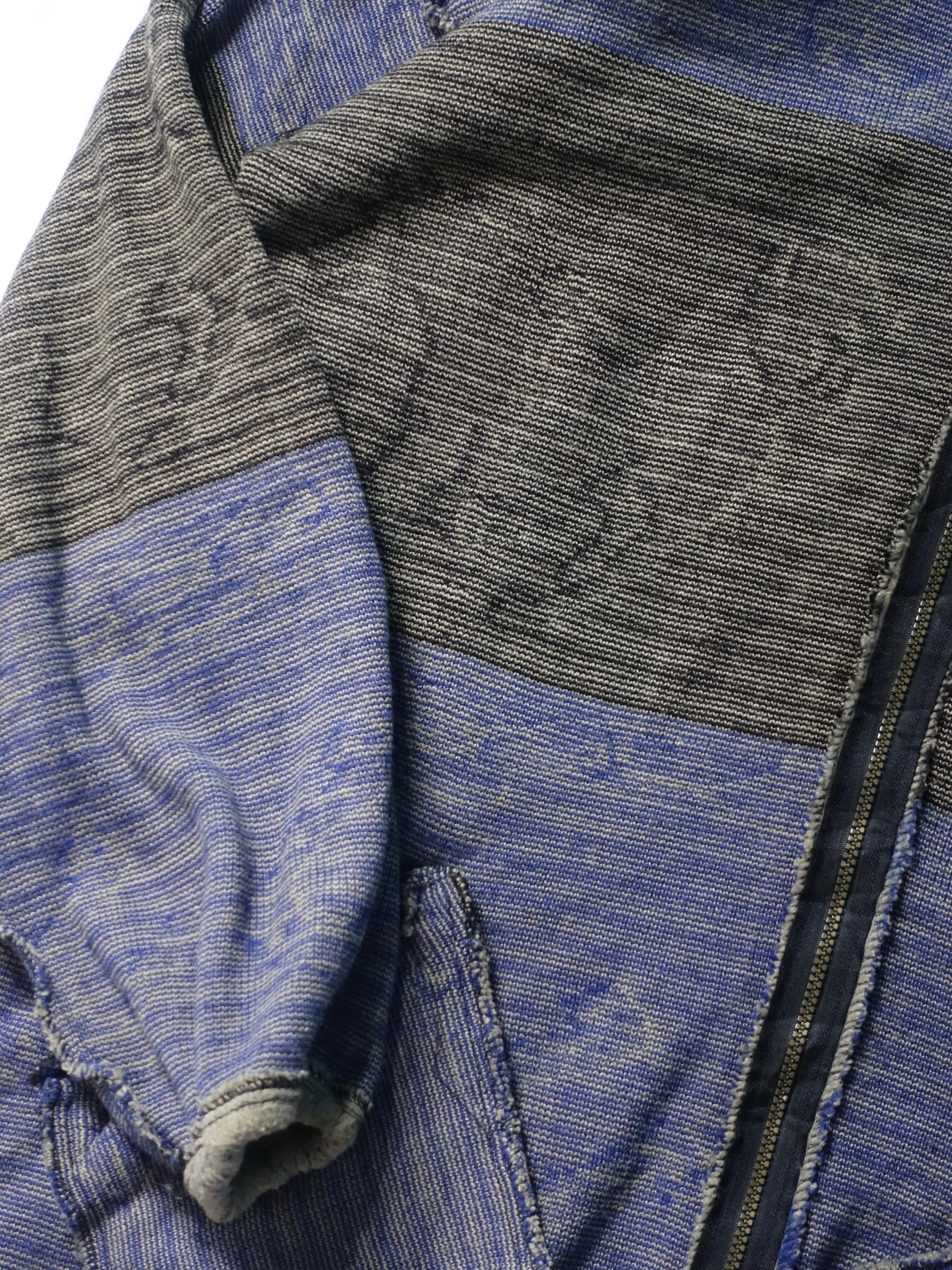 デザインはフード付きフルジップに裾ドローコードを備え、馬と馬蹄をモチーフにした織り柄が象徴的。