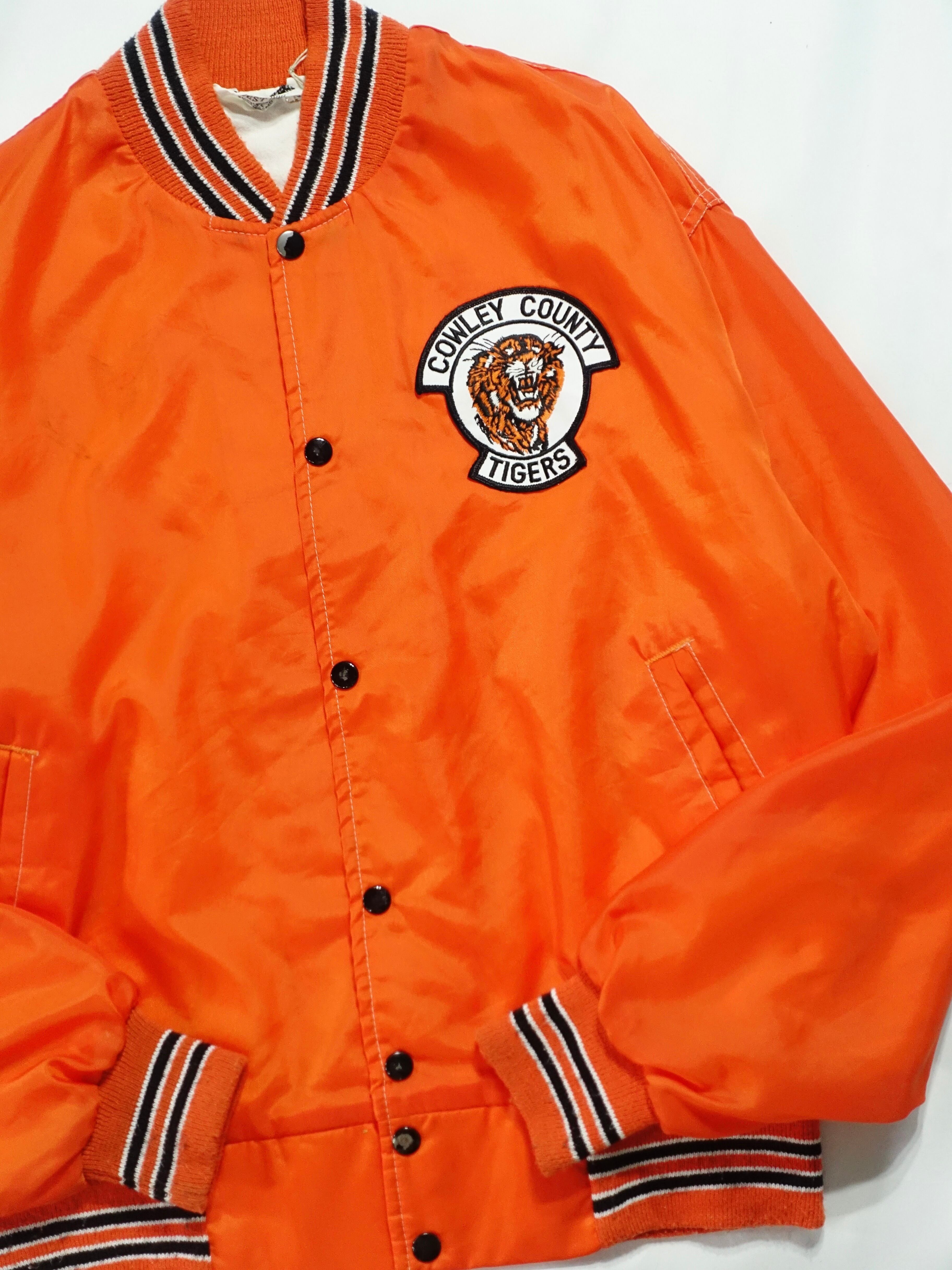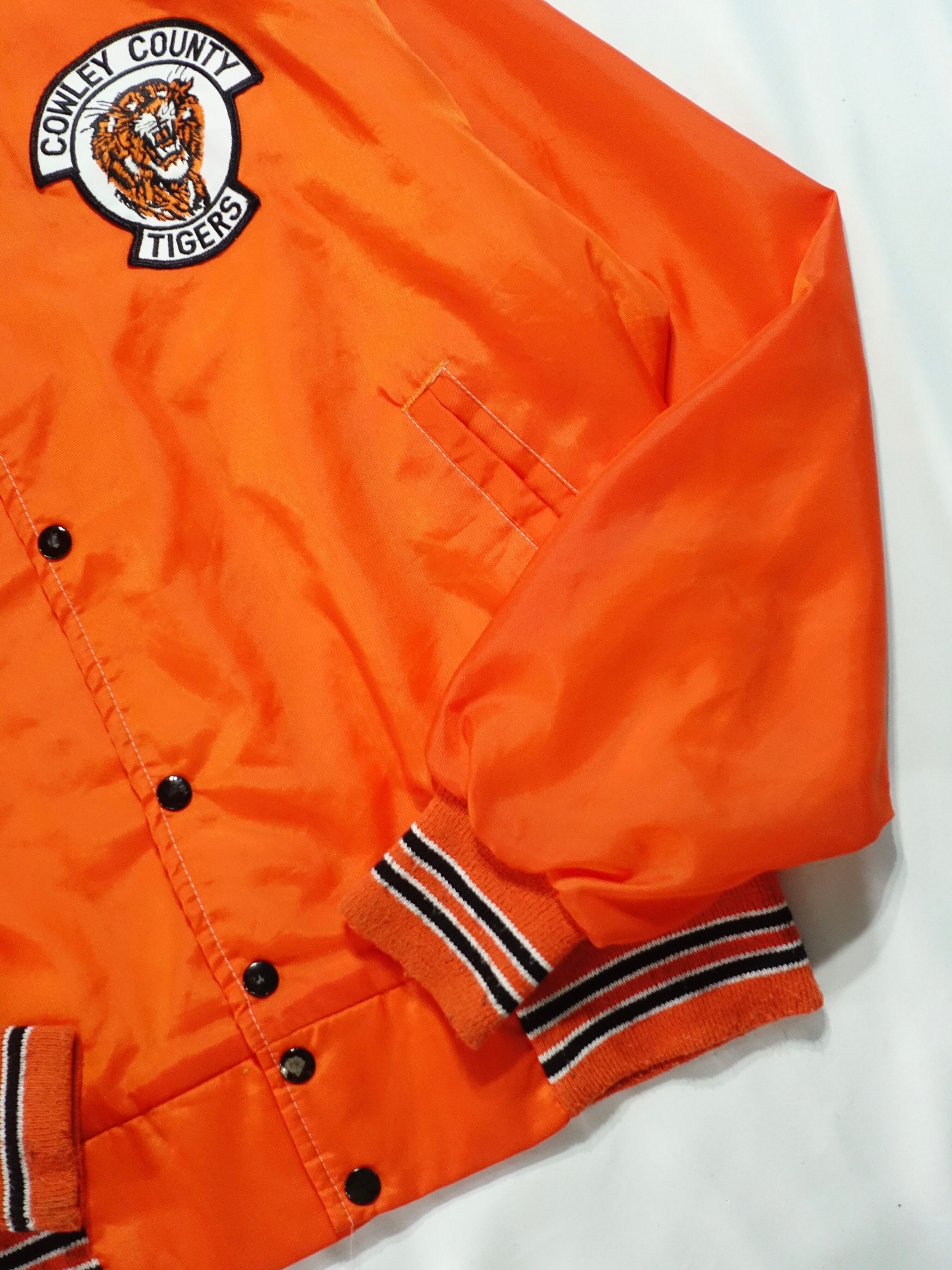 左胸には Cowley County Tigers のチームワッペン、バックにも大判の COWLEY ワッペンを配置。