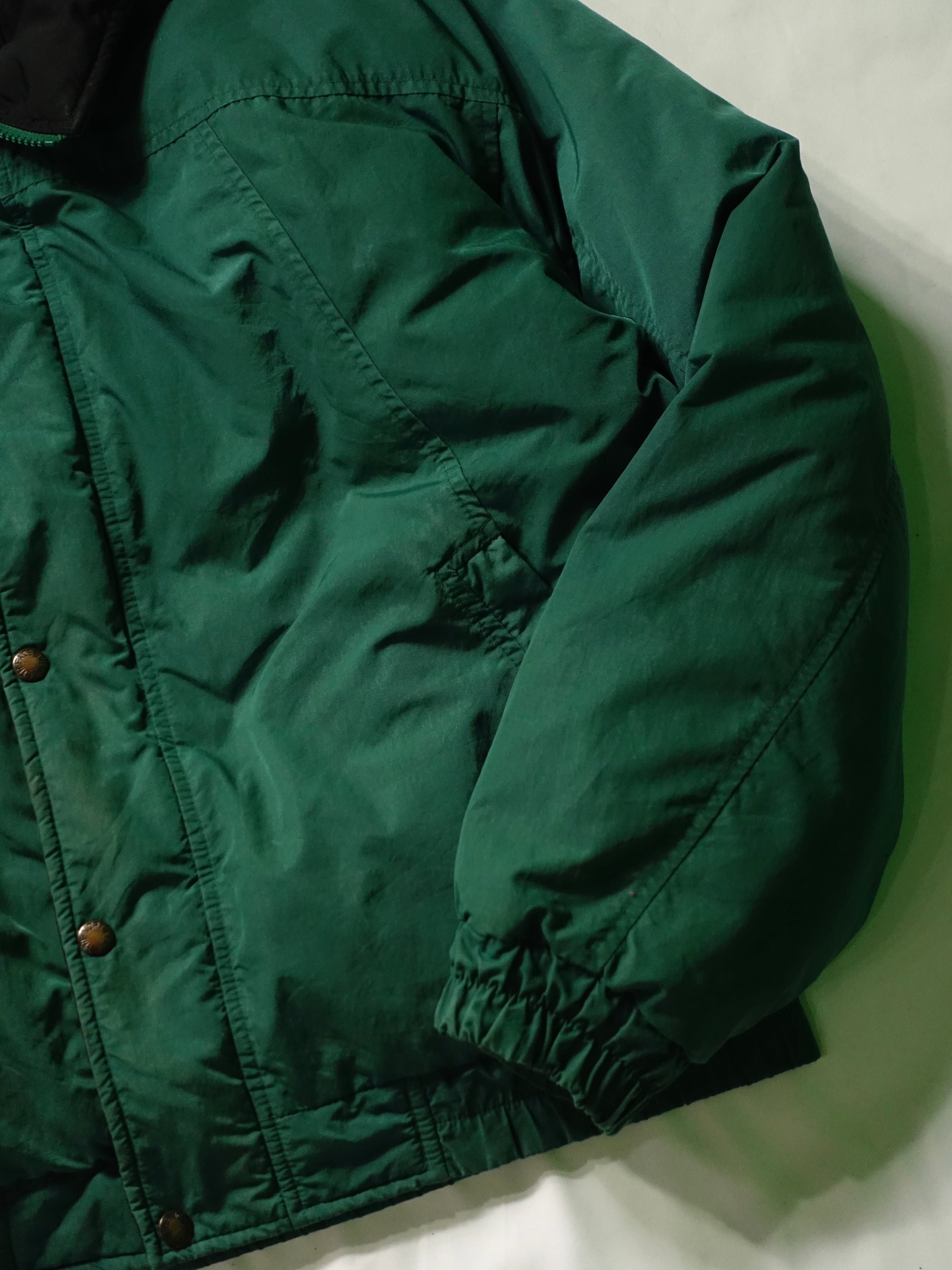 深みのあるグリーンカラーが印象的な一着で、90年代らしいボリューム感のあるショートシルエットが特徴。