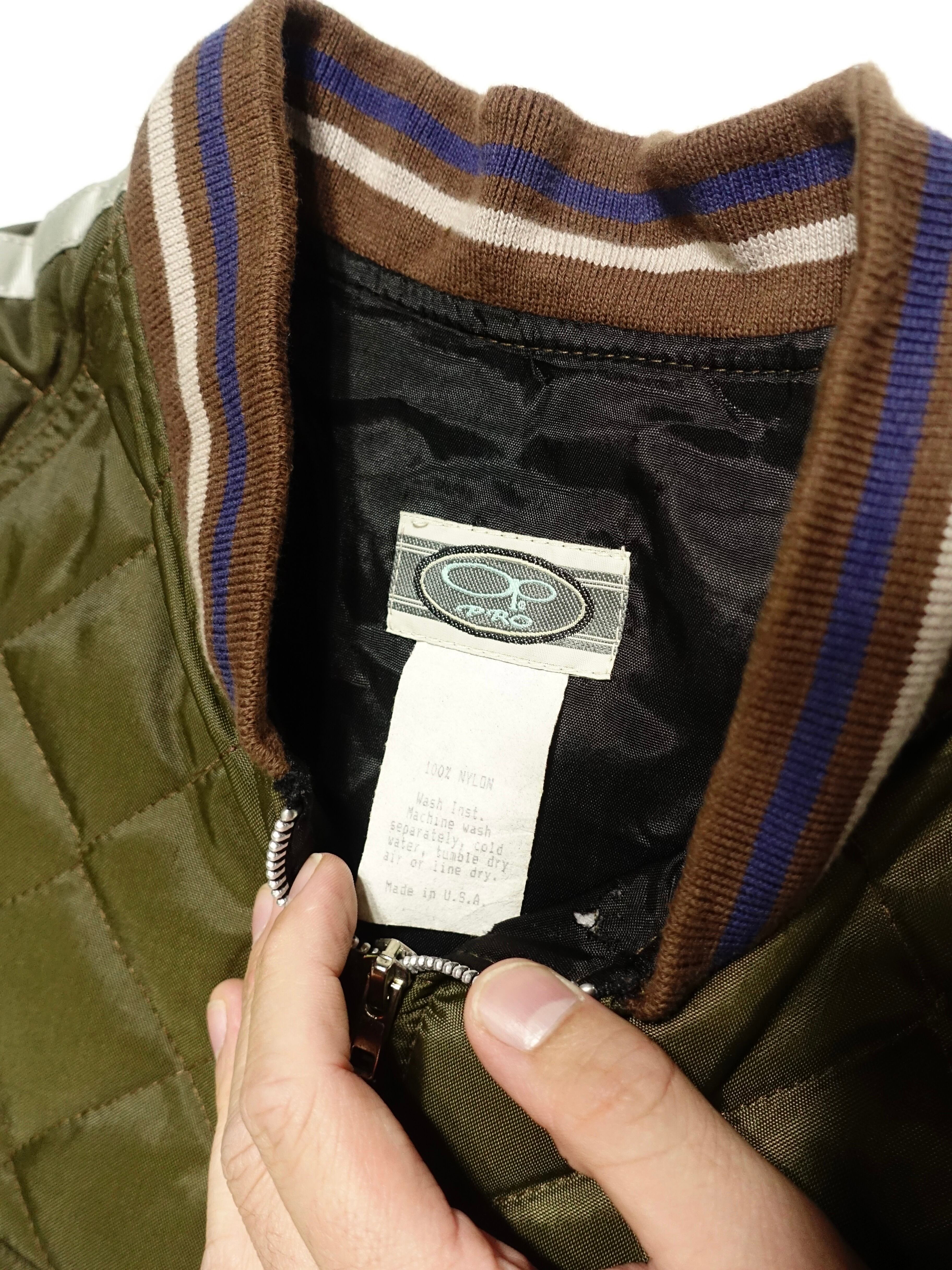 温かみのあるキルティング生地と落ち着いたカーキカラーが魅力の一枚。