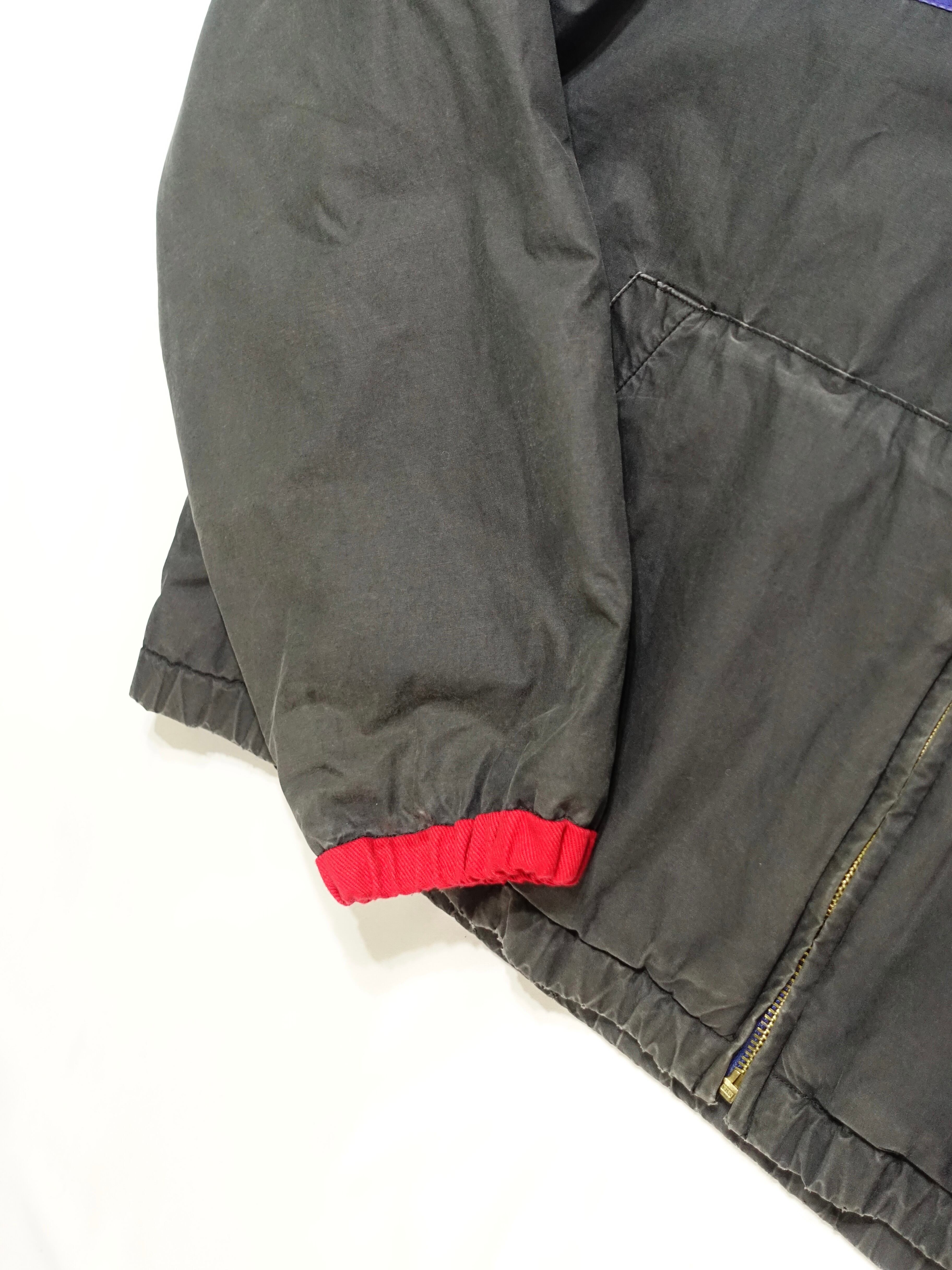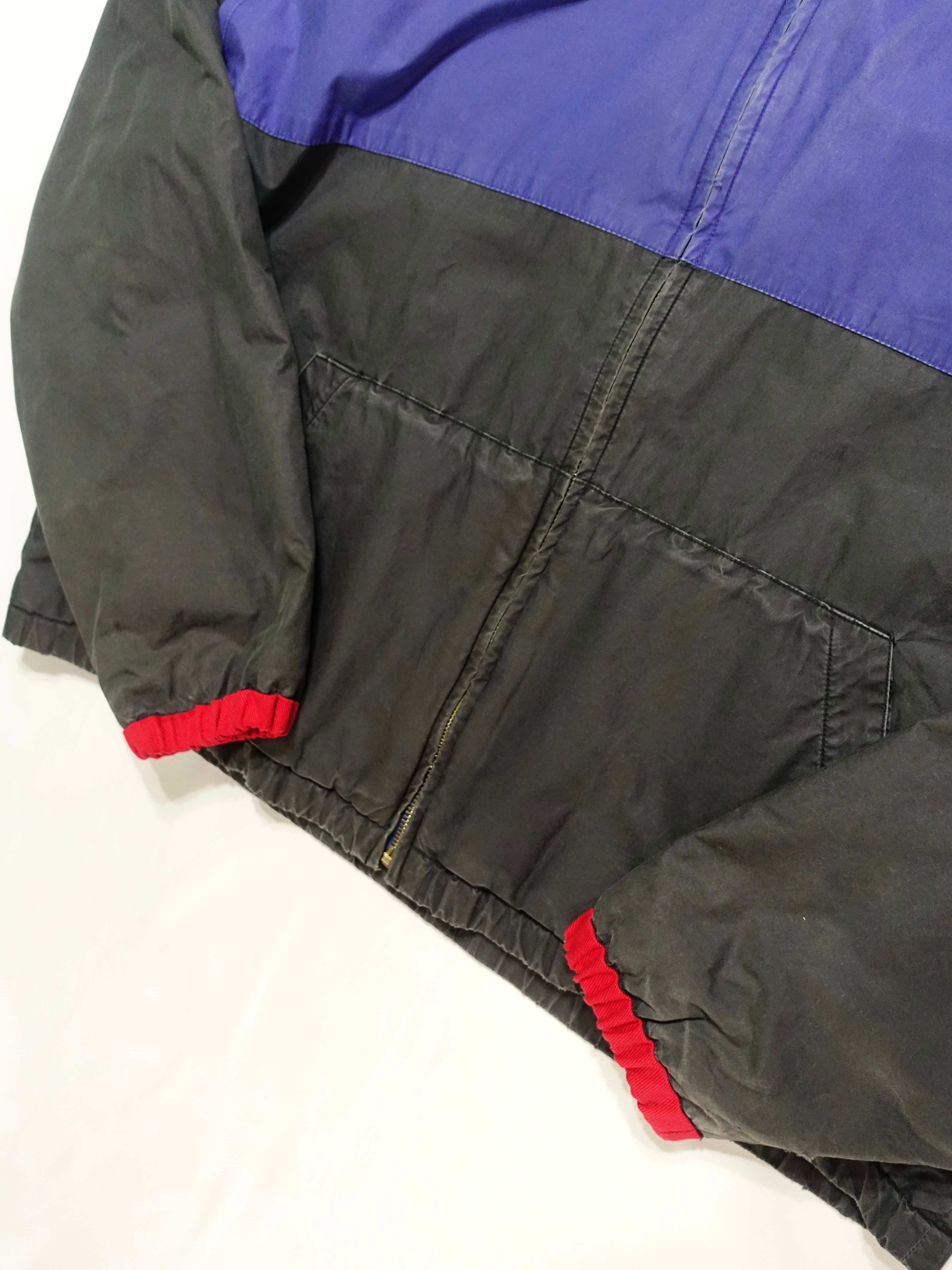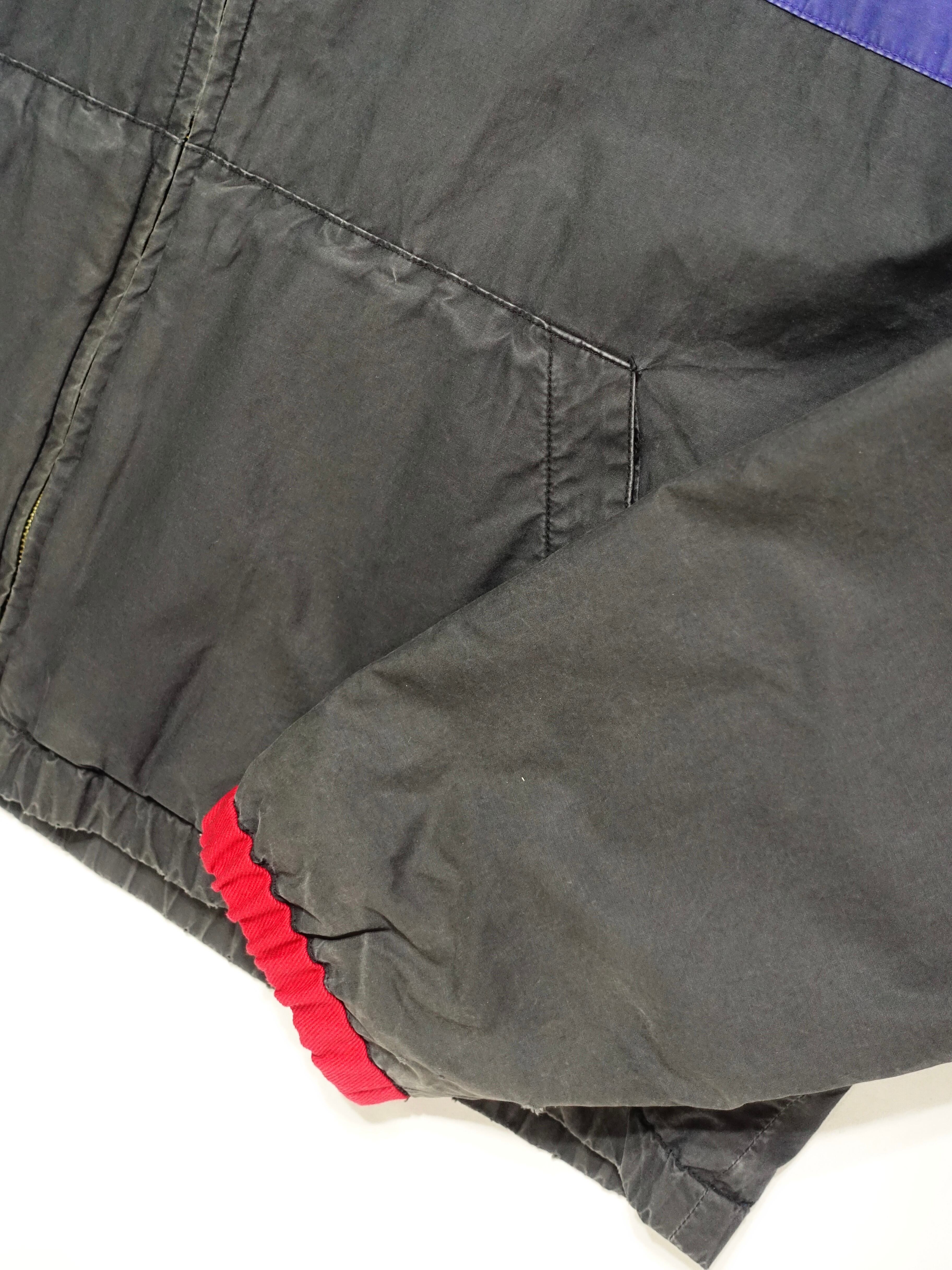 ネイビーとブラックのツートーンで切り替えられたボディに、胸元のレッドのポニーロゴ刺繍が映える、90年代らしいカラーリングが魅力的な一枚。