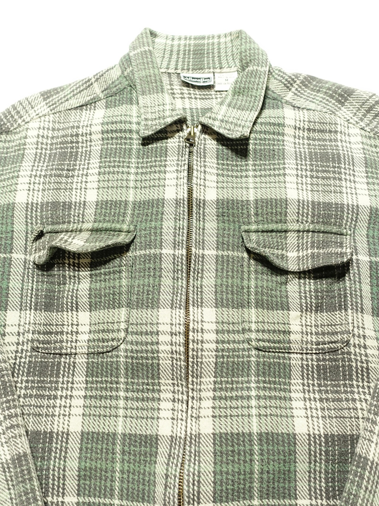 両胸にはフラップ付きのパッチポケット、裾はボックスカットという、クラシックなワークシャツのディテールを取り入れつつ、ジップアップという現代的なデザインが融合した一着。