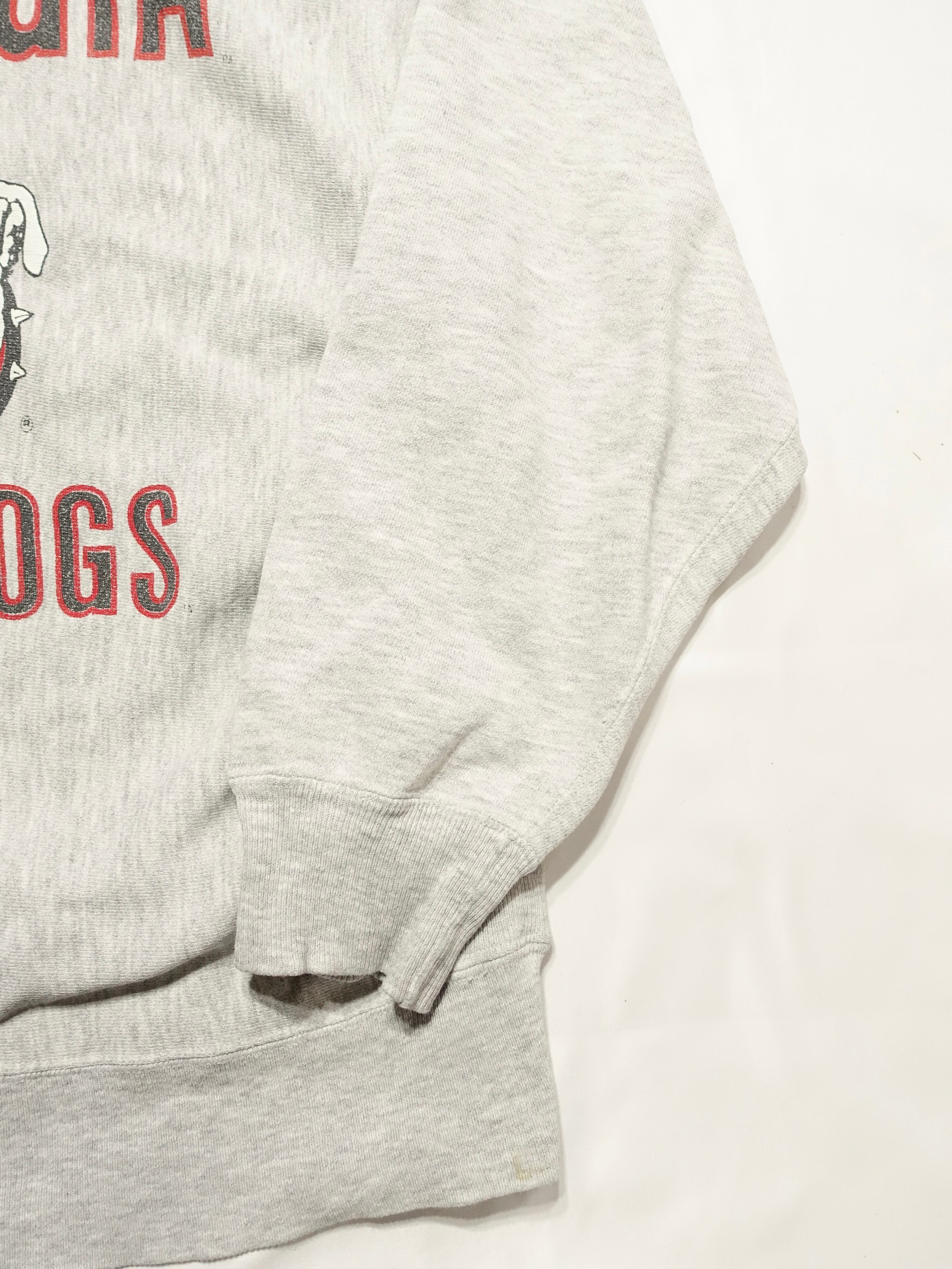 こちらは、アメリカのジョージア大学(GEORGIA BULLDOGS)のカレッジプリントが施されたアイテム。古着ならではの肉厚でタフな質感と、経年変化した風合いが魅力です。
