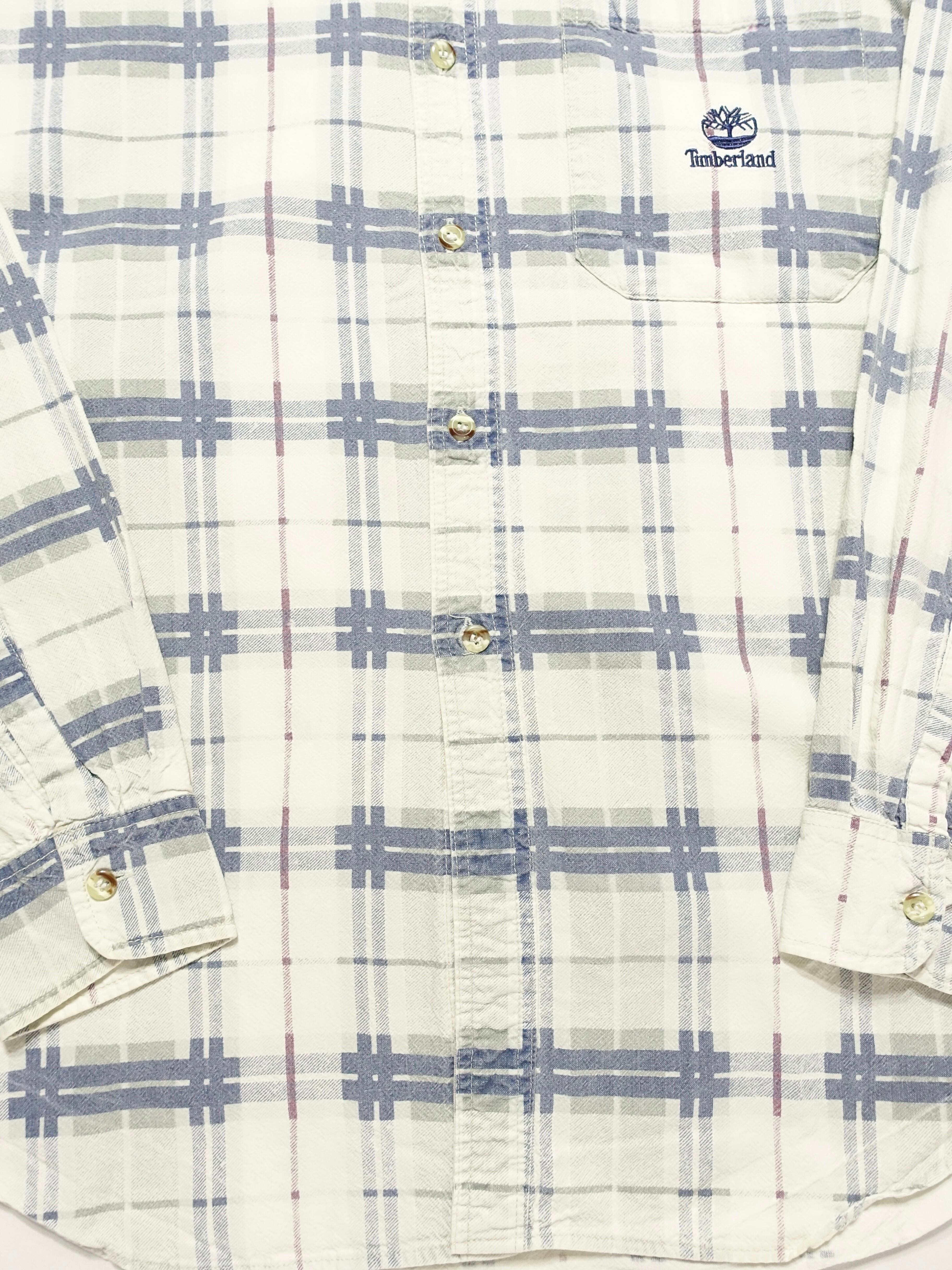 左胸には、Timberlandのアイコンであるツリーロゴの刺繍がワンポイントで入っており、ブランドを主張しすぎないさりげないお洒落さを演出しています。