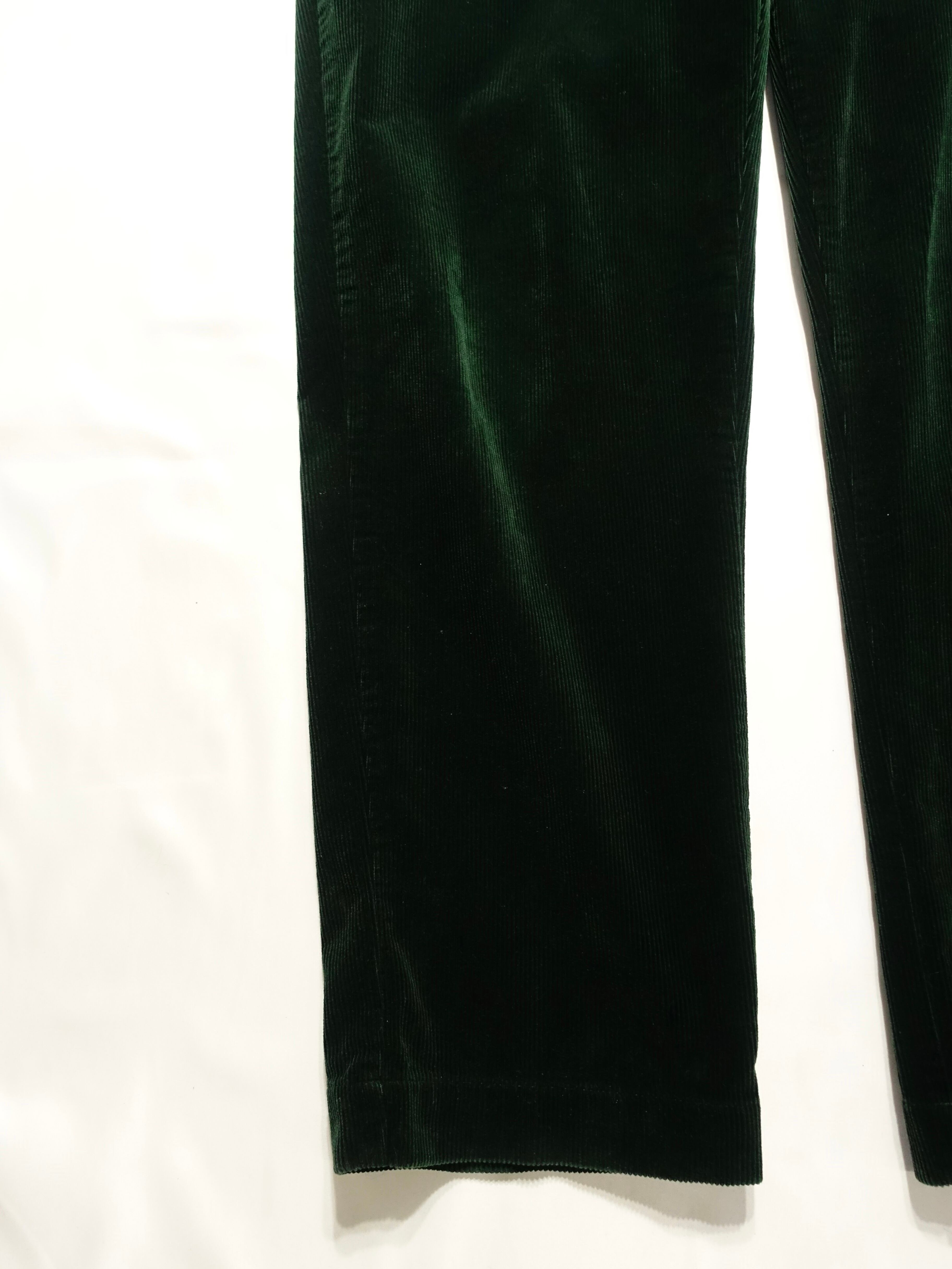 光沢感がありドレッシーな印象を与える「細畝(ほそうね)」のコーデュロイ素材を使用したアイテム。