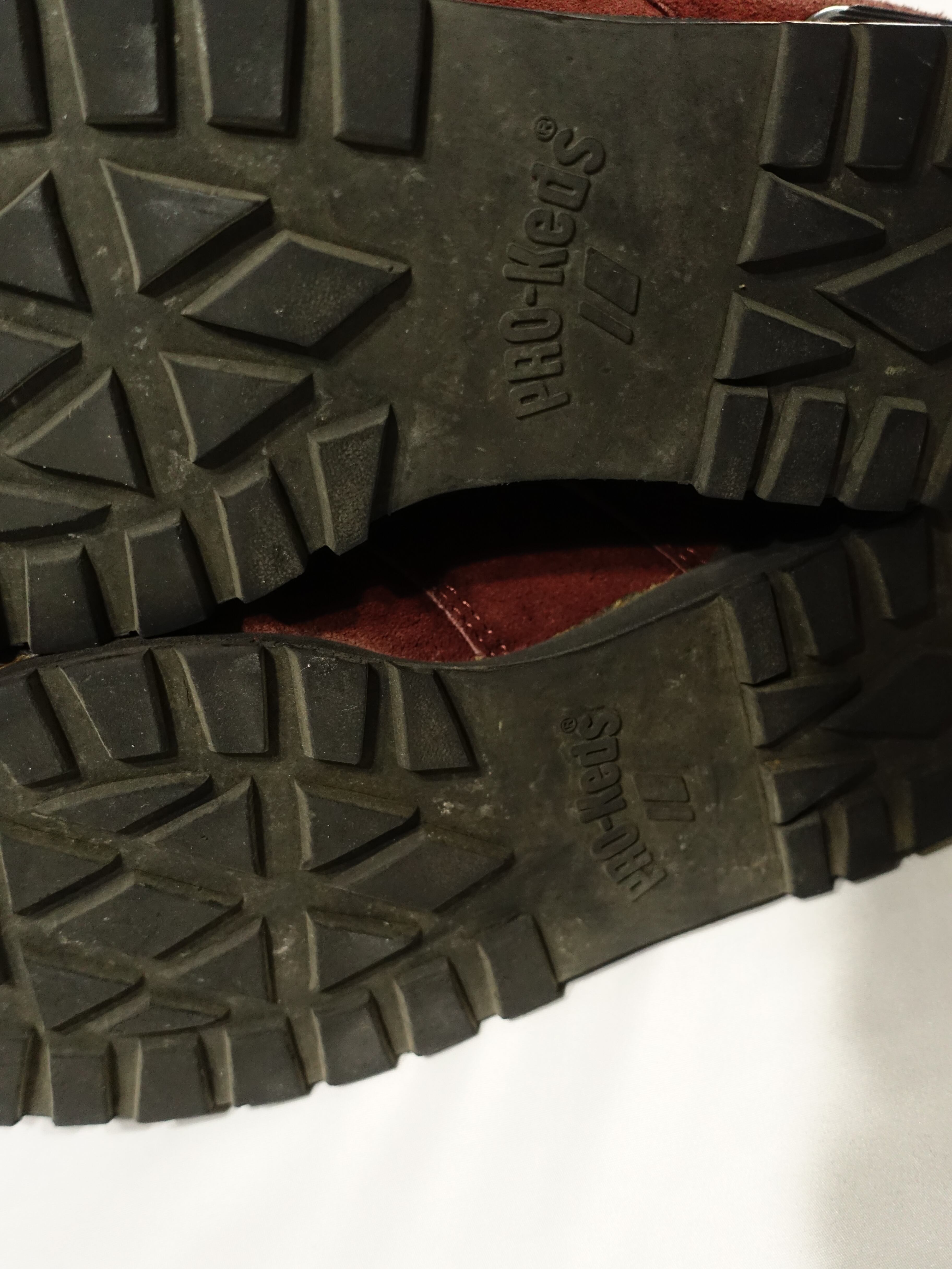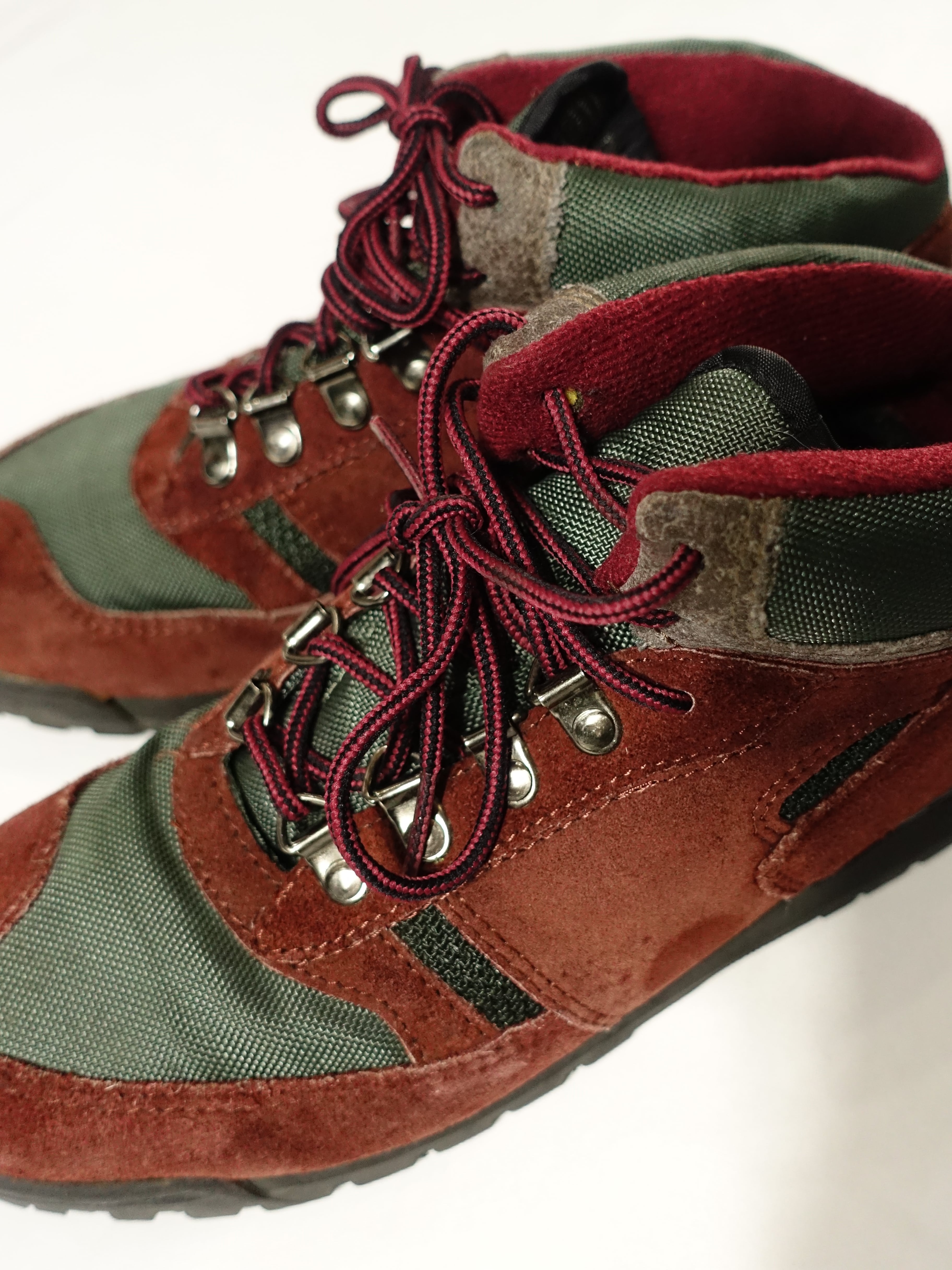 スエードとナイロンメッシュを組み合わせたアッパーと、バーガンディのシューレースが特徴的です。