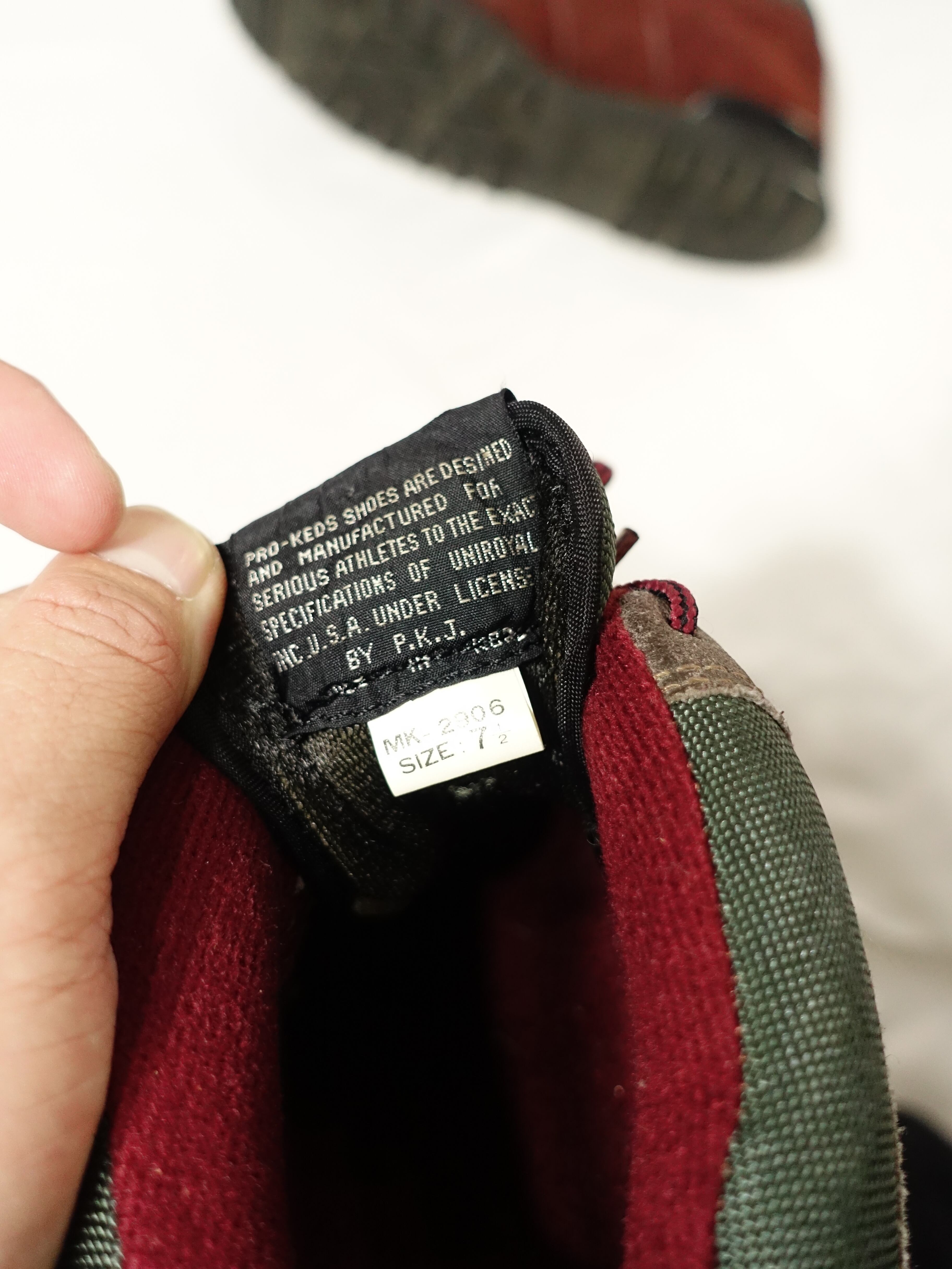肉厚なウール素材の履き口は、当時のアウトドアウェアらしい武骨さと保温性を兼ね備えています。