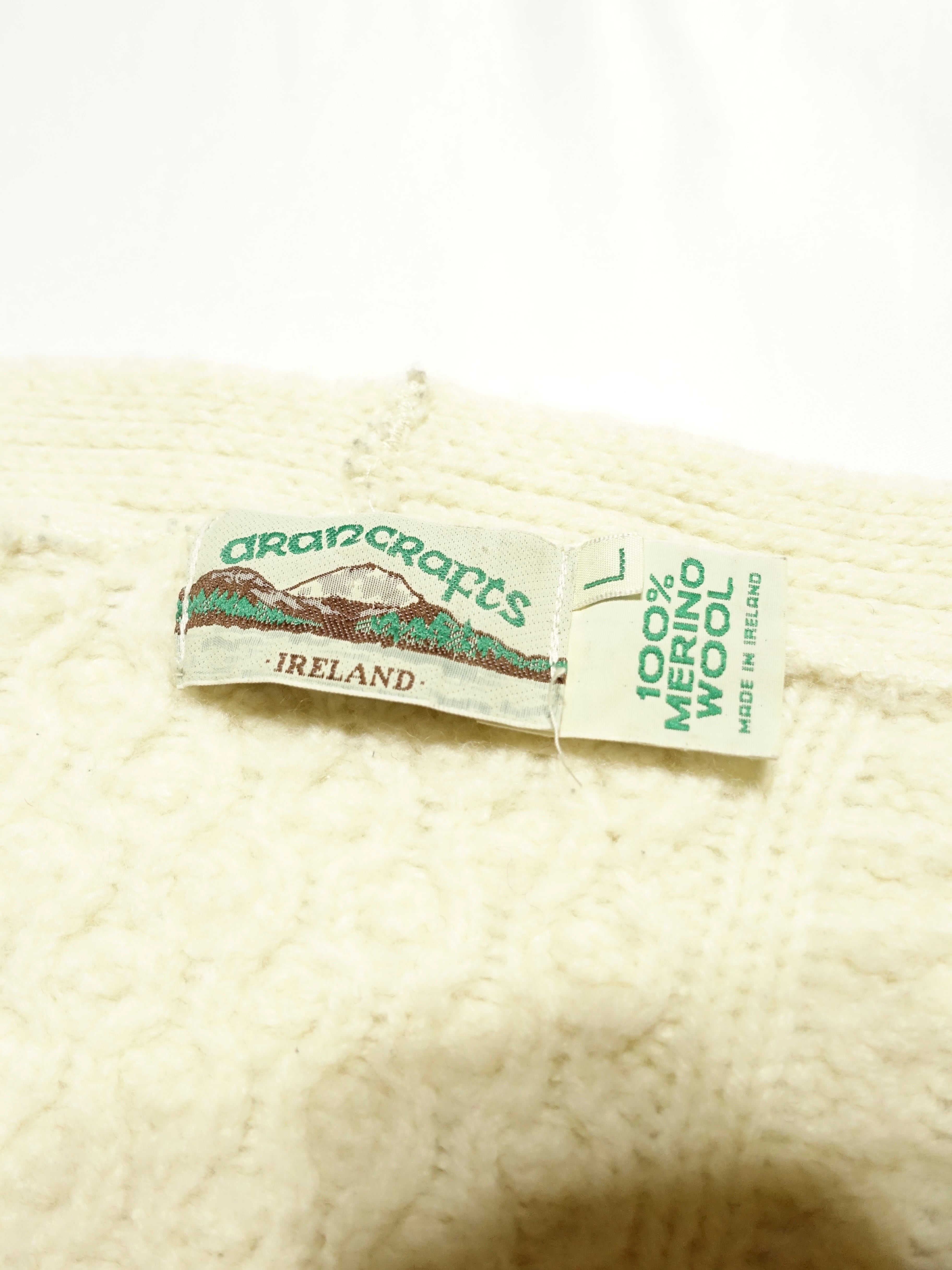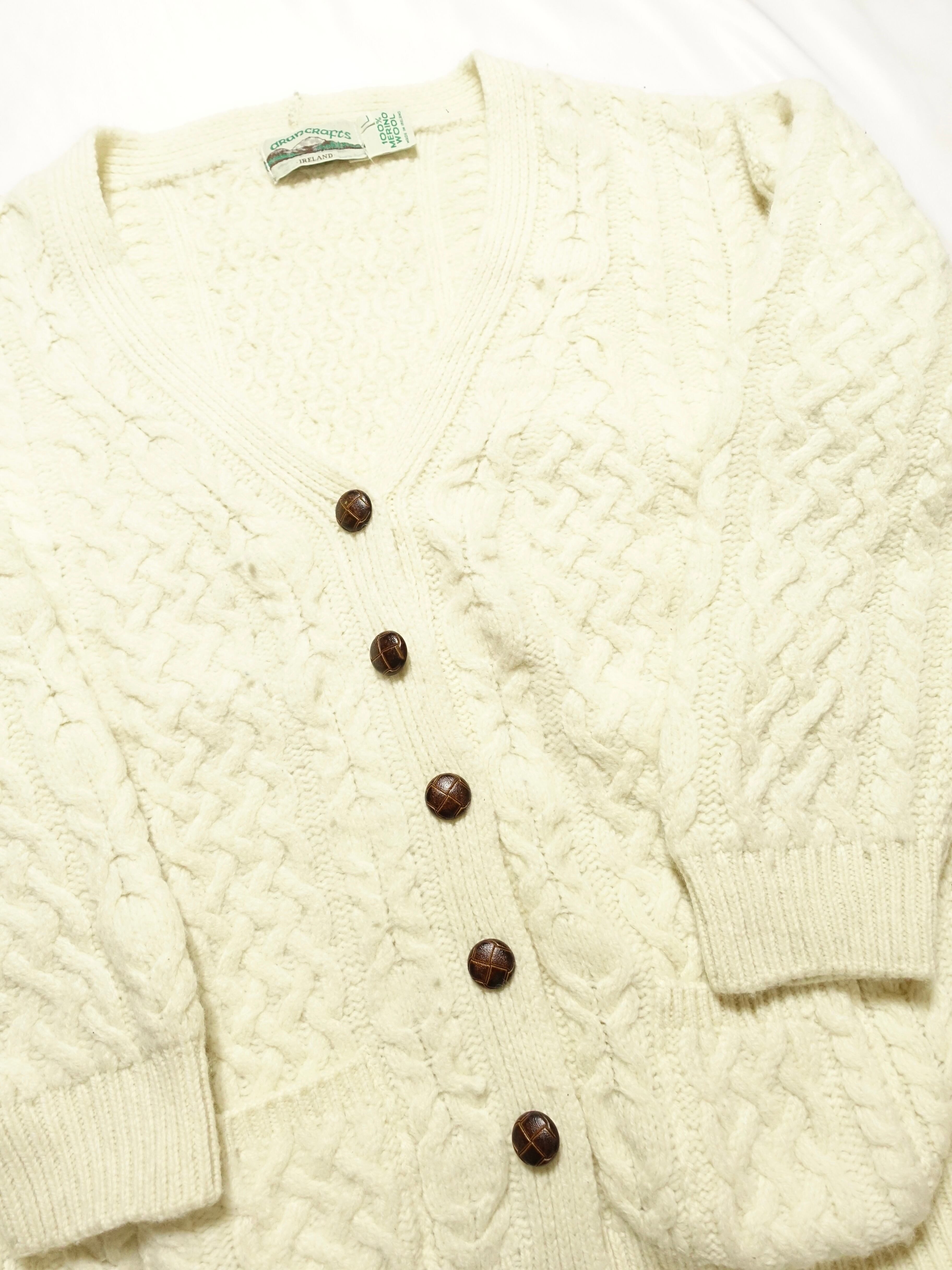 【MADE IN IRELAND】90s Aran Crafts Merino Wool Cardigan