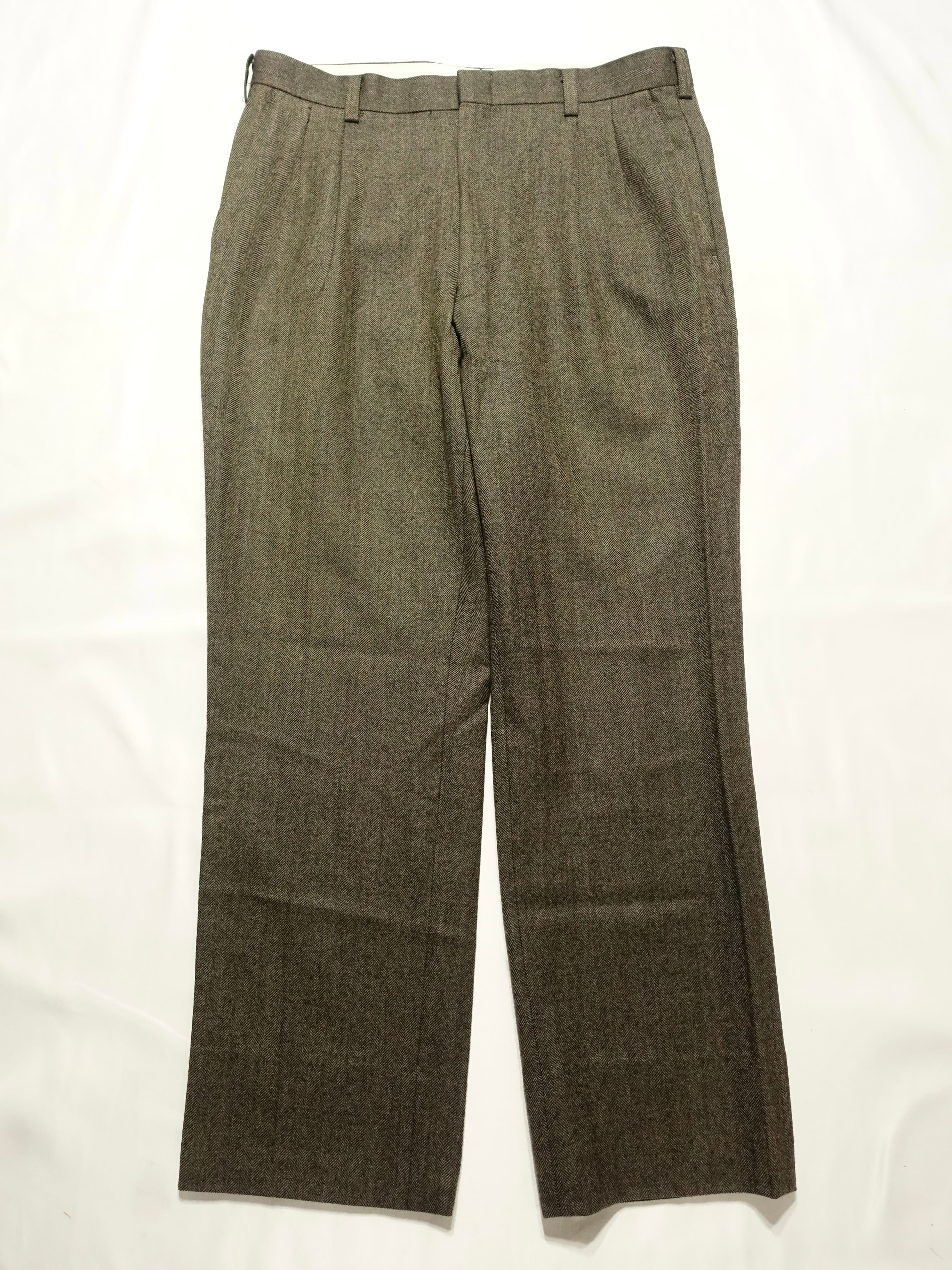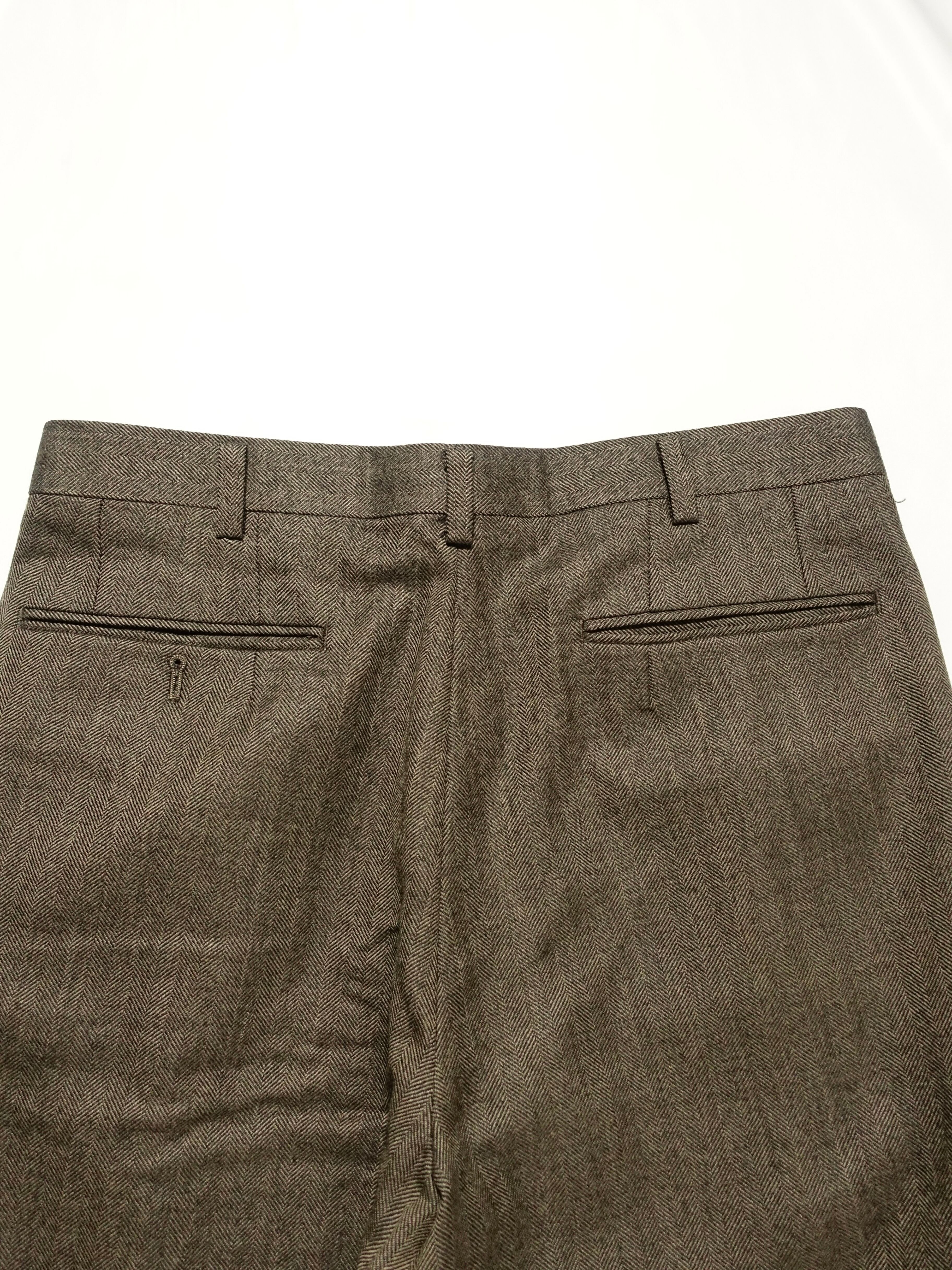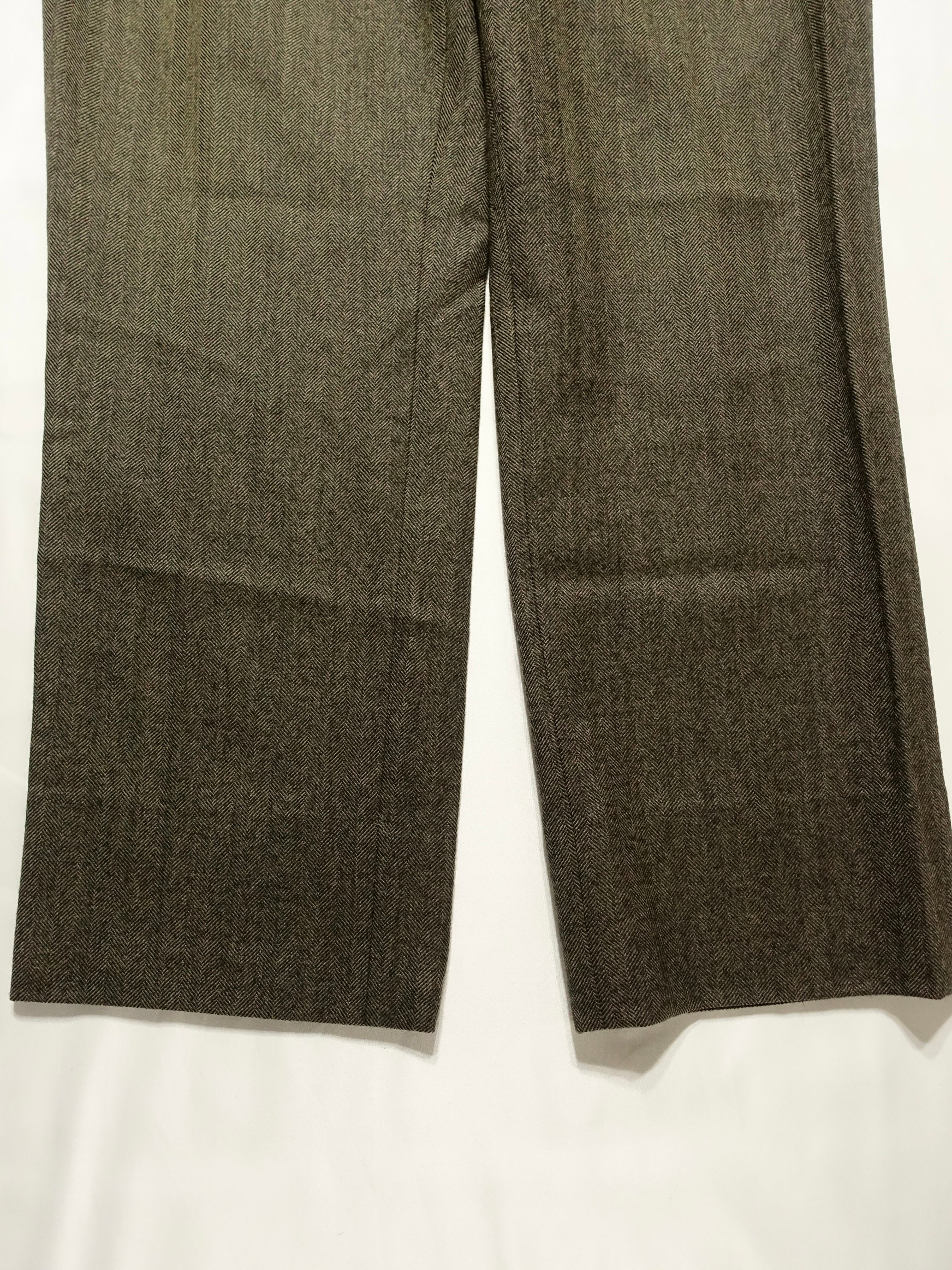 2タック入りのゆったりとしたワタリ幅は、トレンド感のあるワイドシルエットを演出。当時のこだわりが詰まったディテールや、無骨ながらも上品な雰囲気が魅力のアイテム。