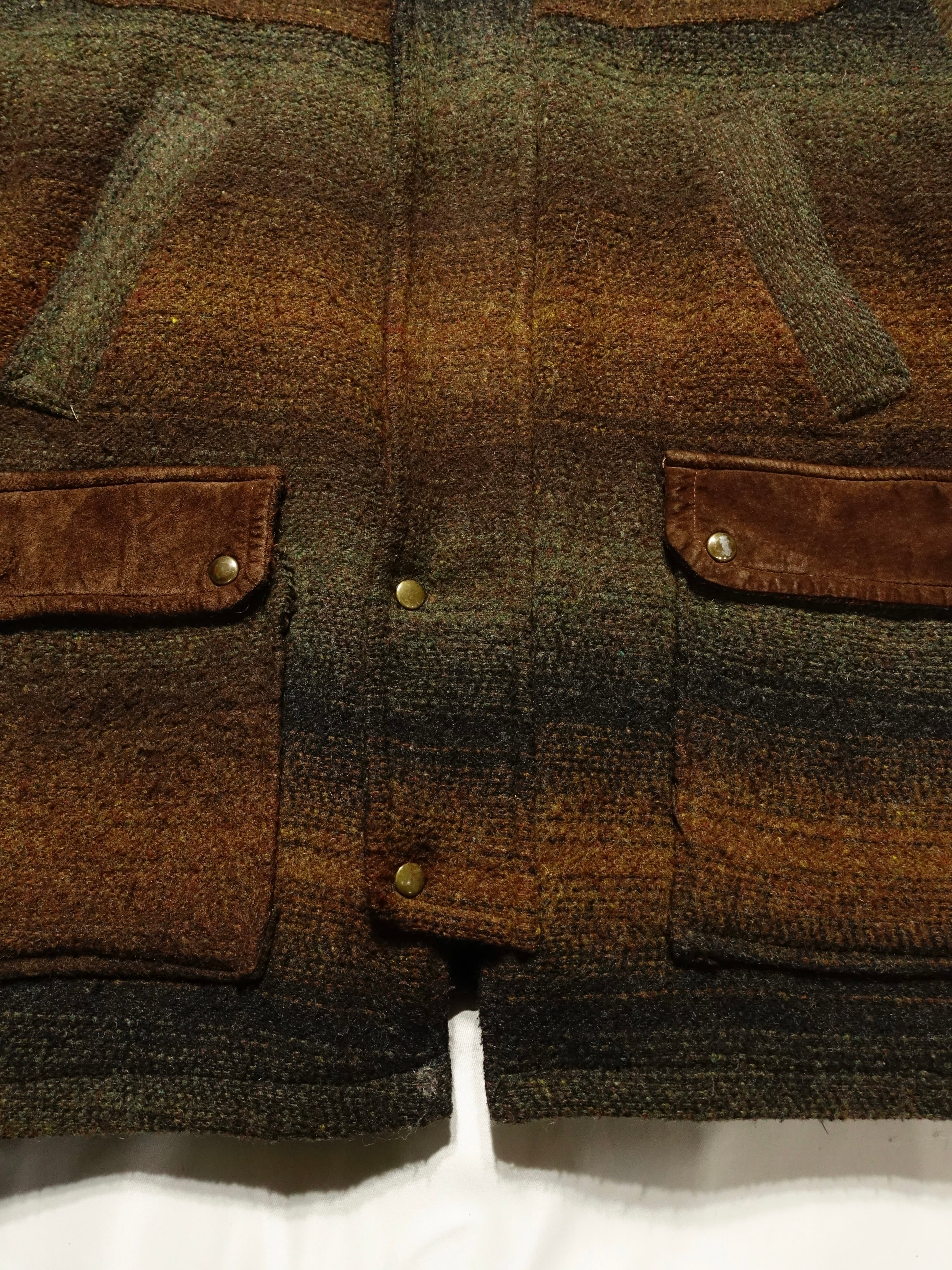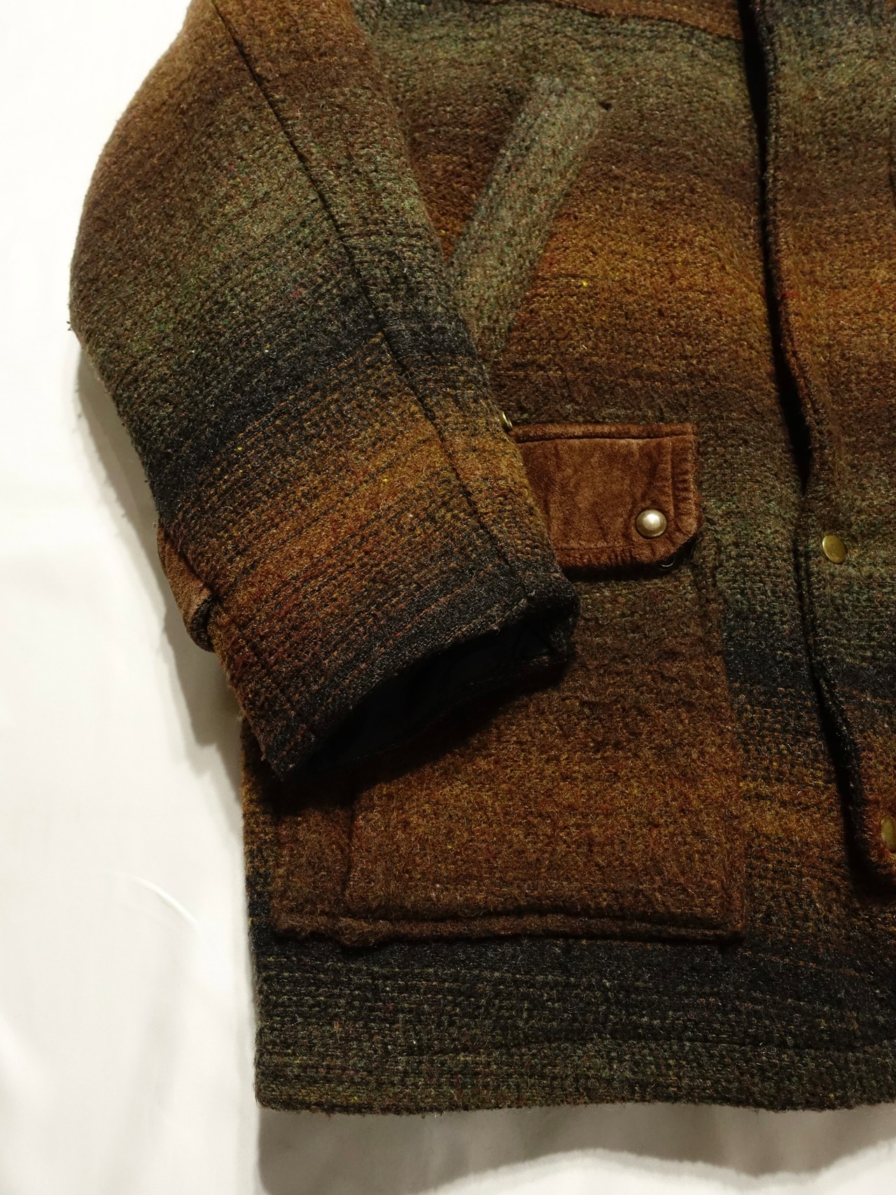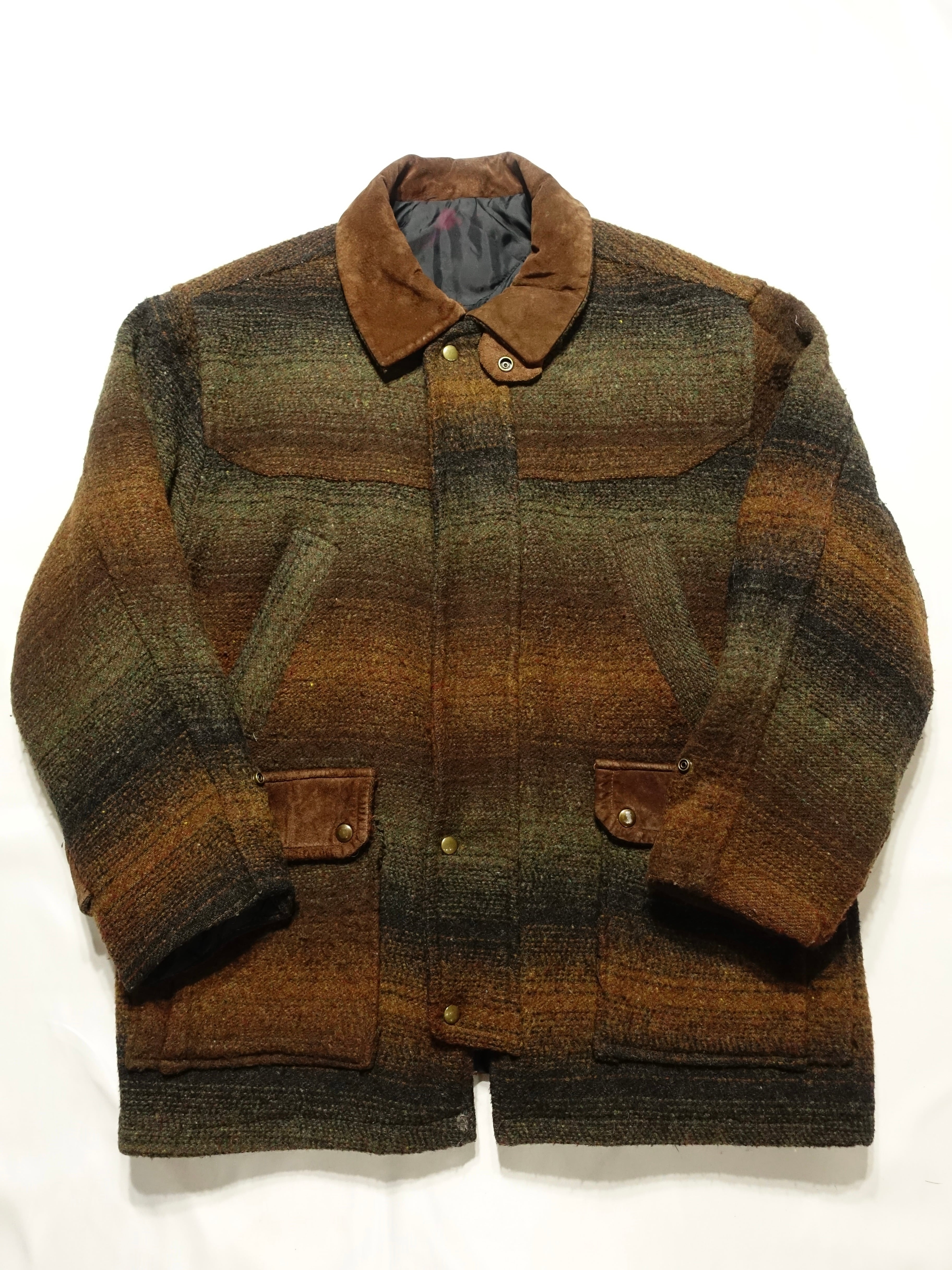 ウールハンティングジャケット。最大の魅力は、ブラウンからグリーン、そしてブラックへと移り変わる、この美しいグラデーションのパターン。