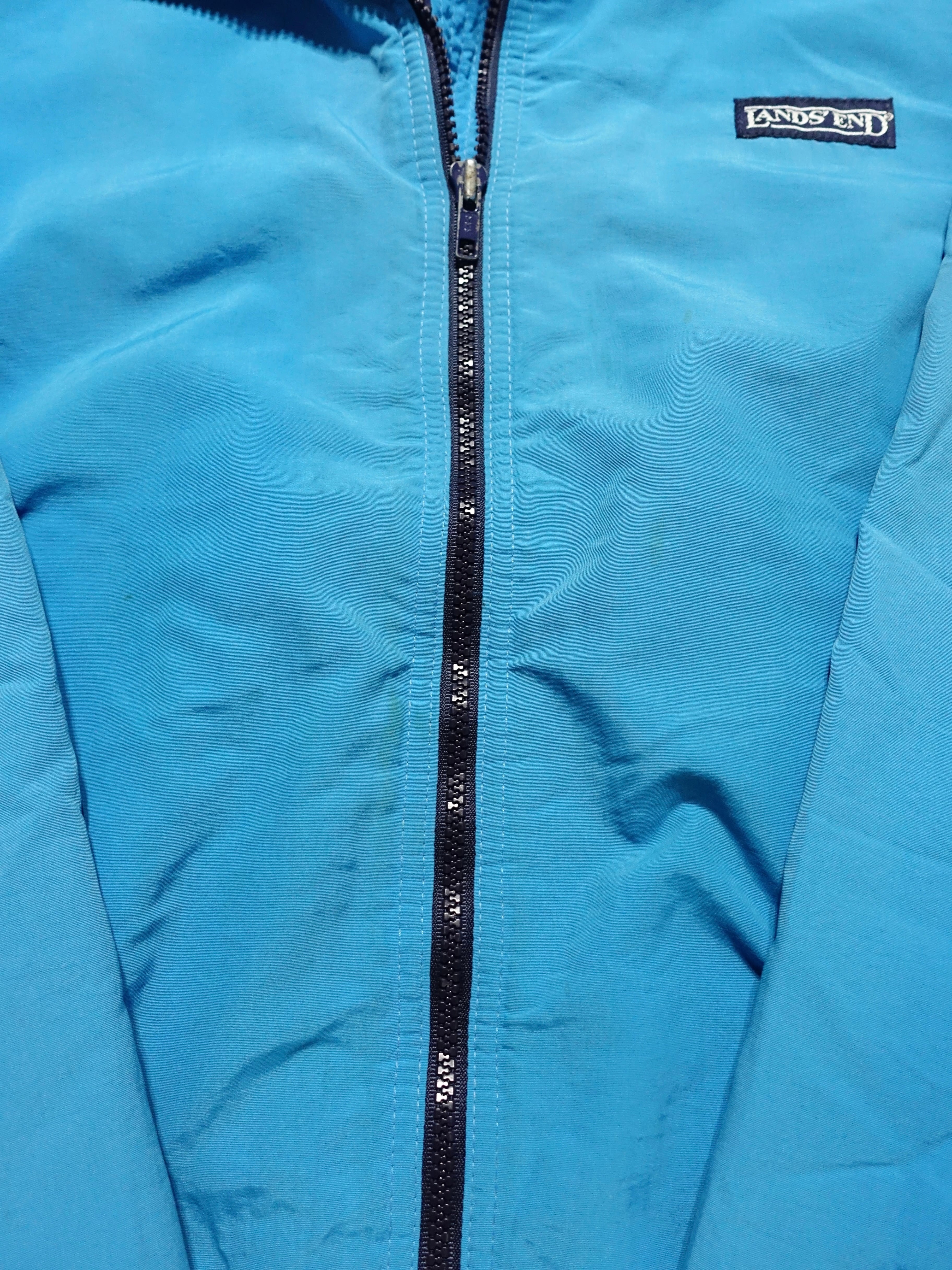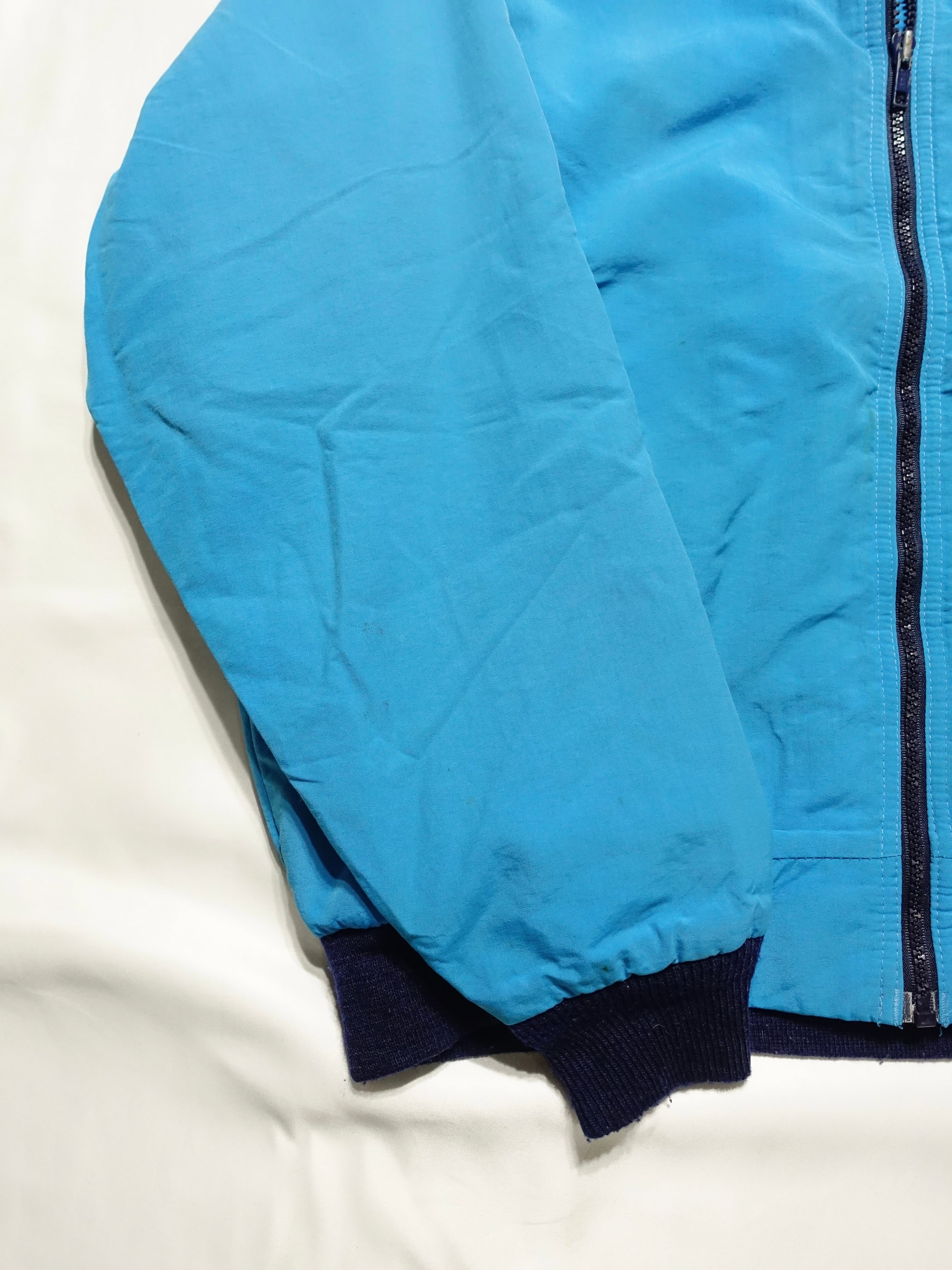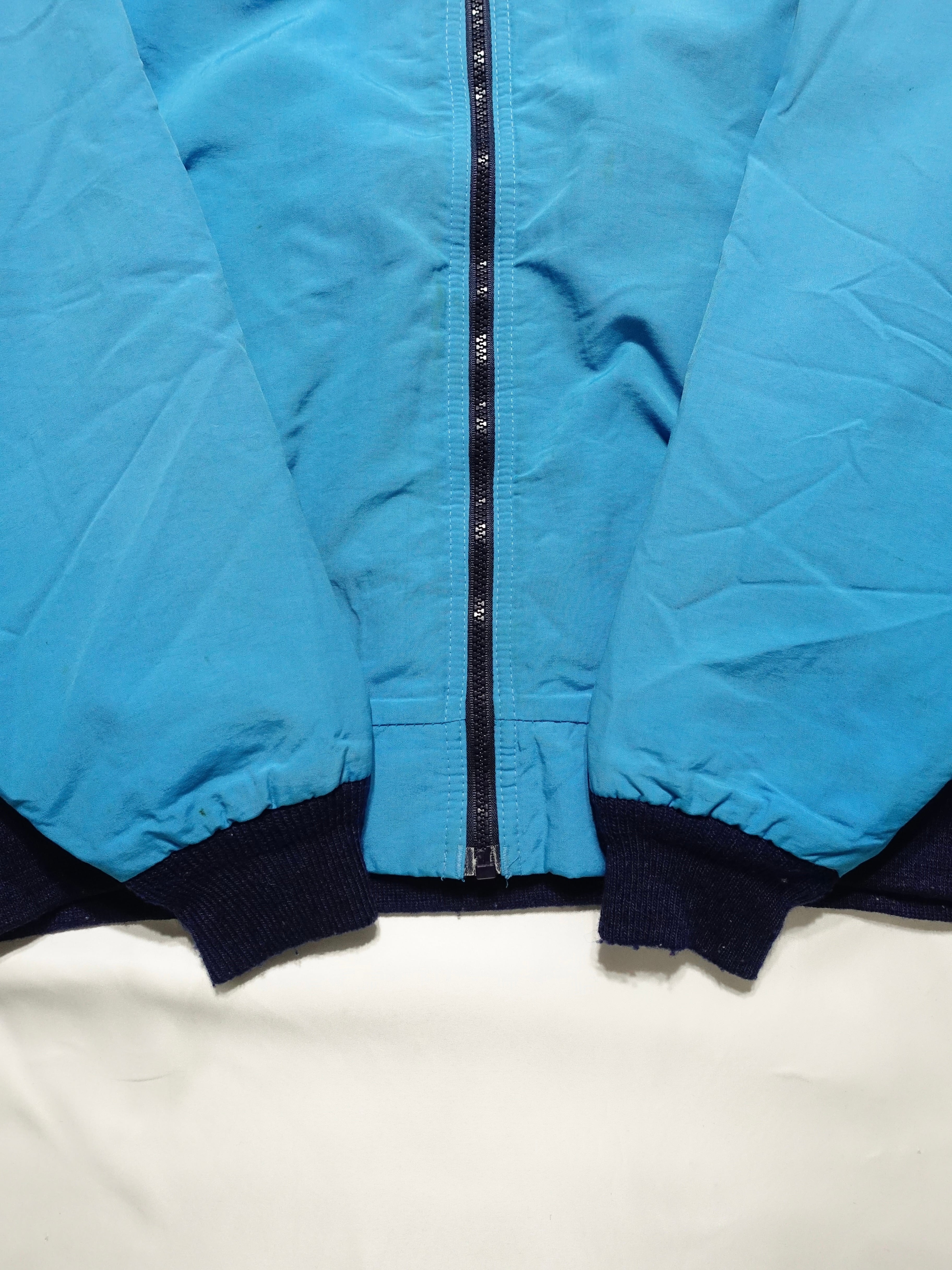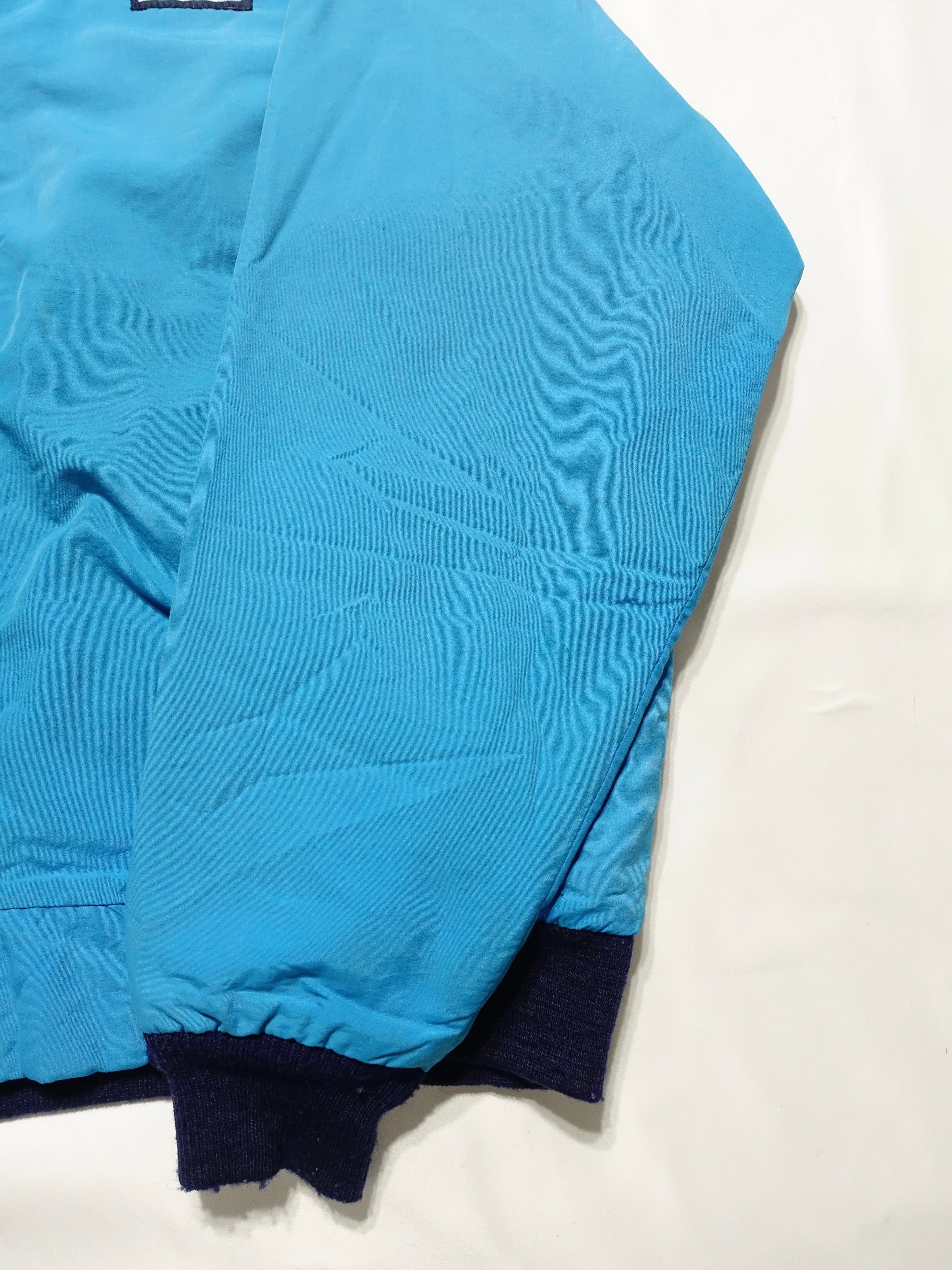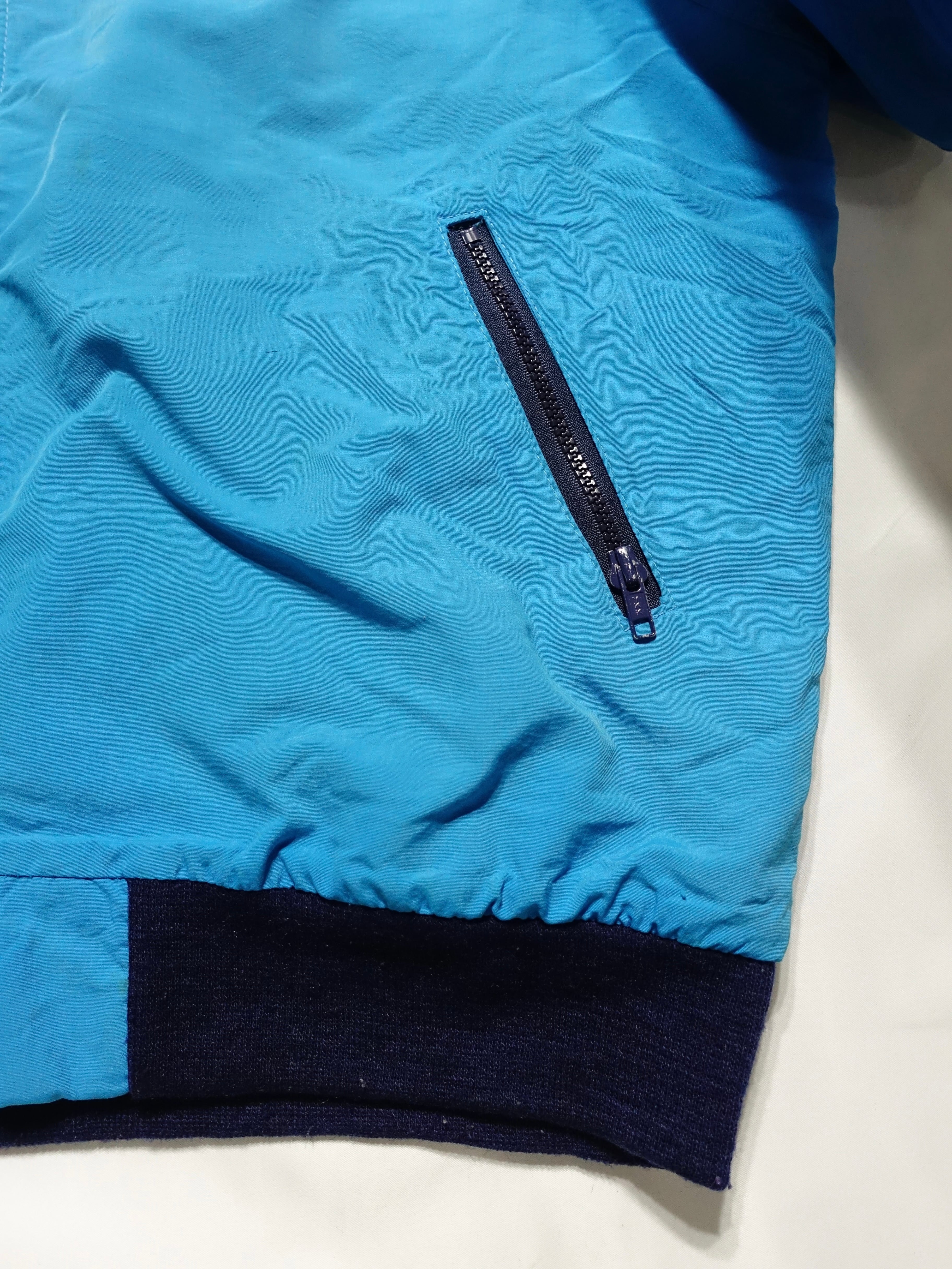 鮮やかなターコイズブルーのボディに、襟元とリブのネイビーの配色が映える、カラーリングです。