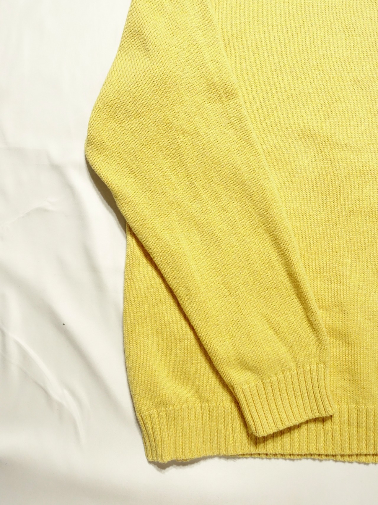 鮮やかなイエローのボディに、シンプルなクルーネックデザイン。