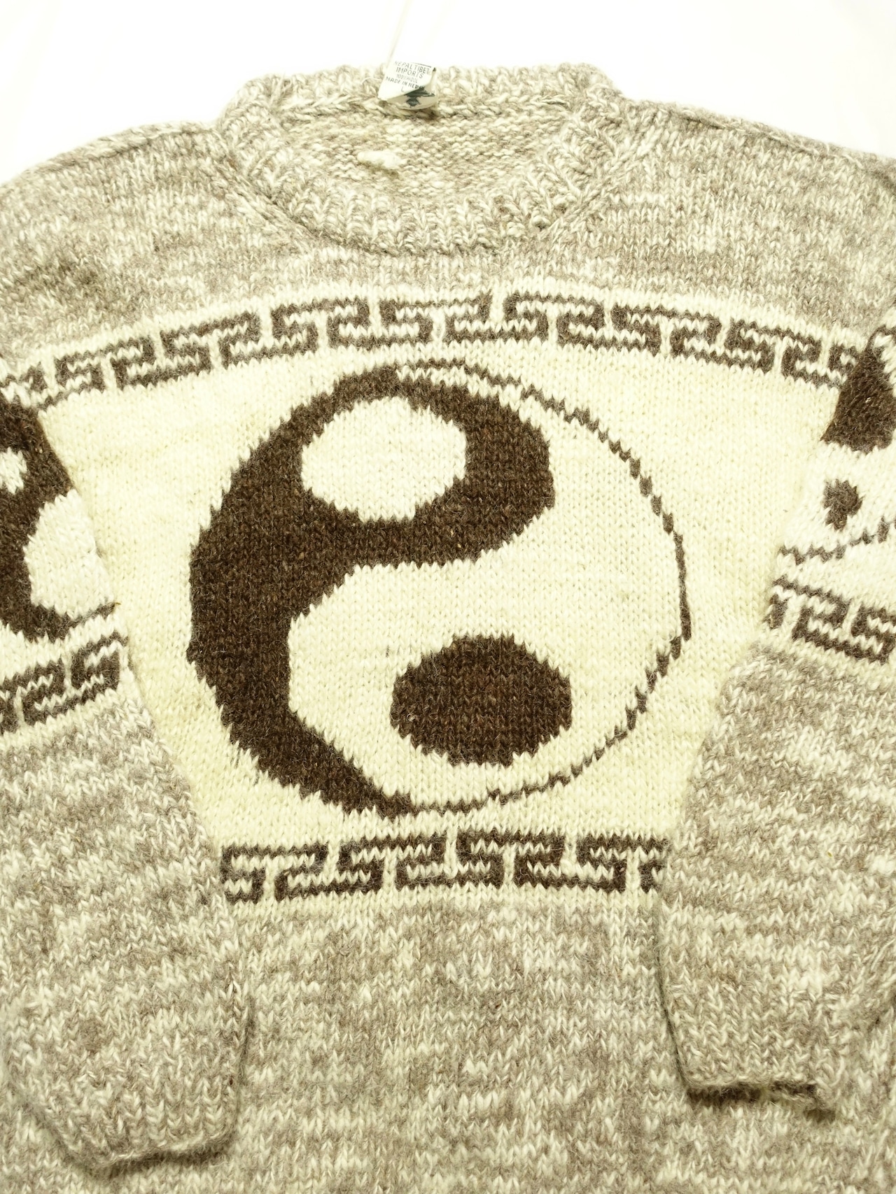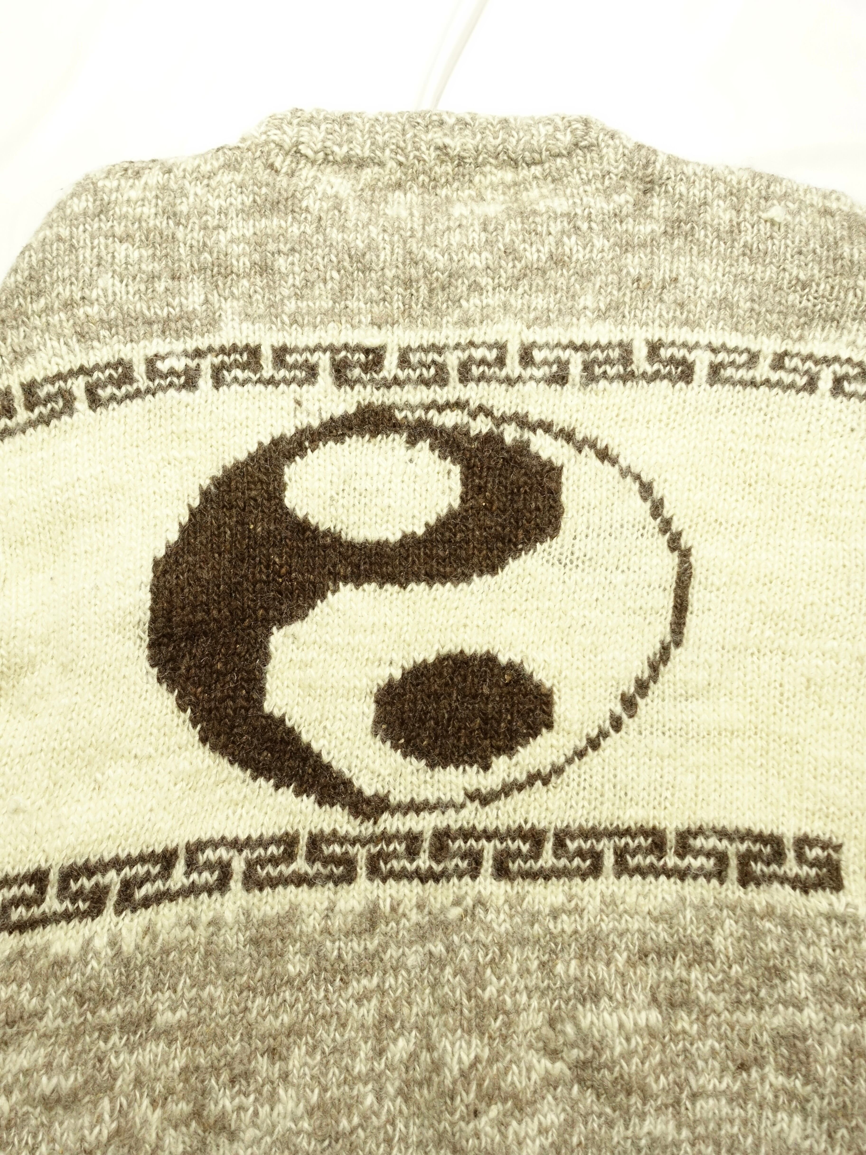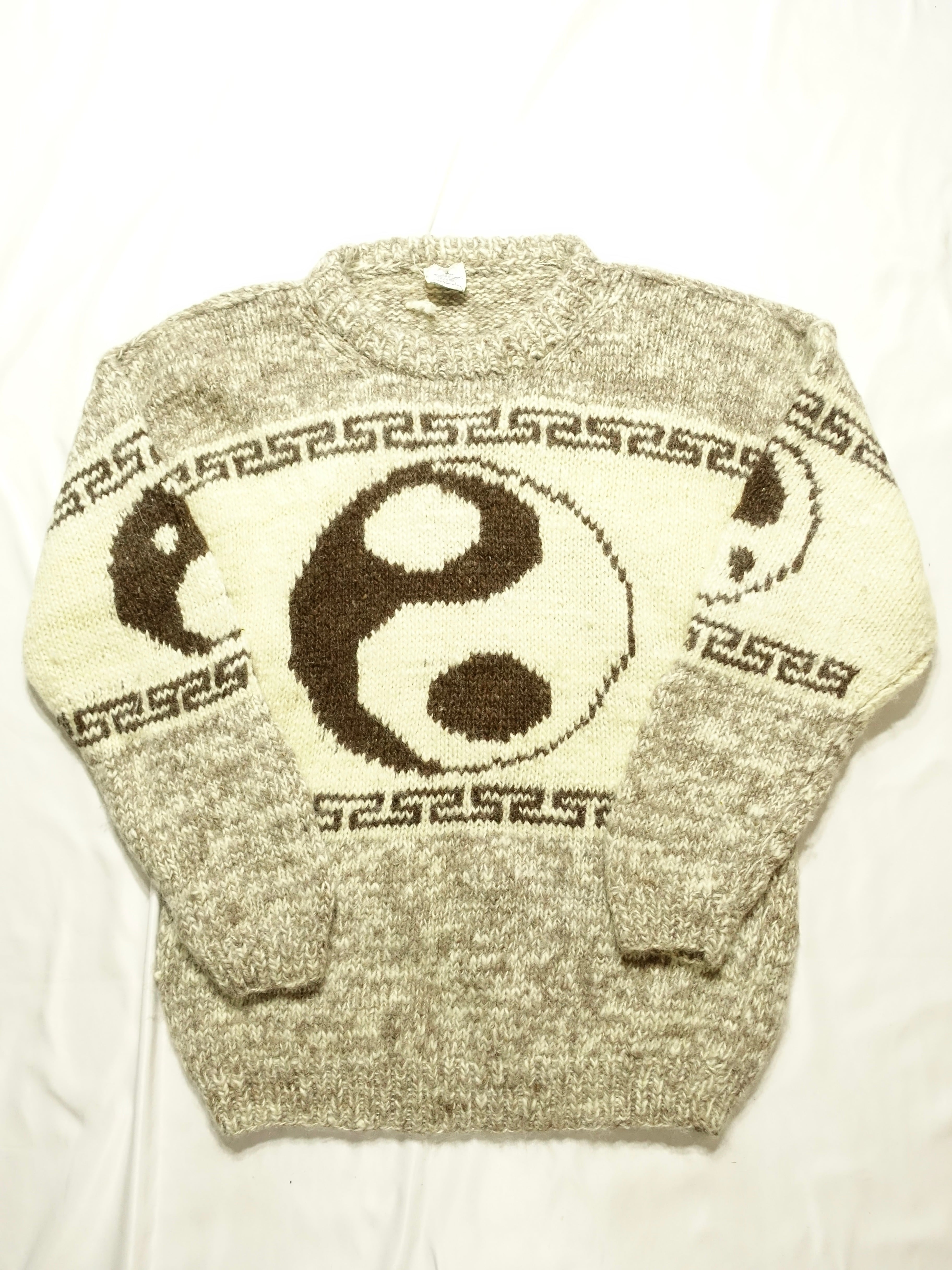 80年代~90年代頃の陰陽(インヤン)マークがデザインされたウールニットセーター。