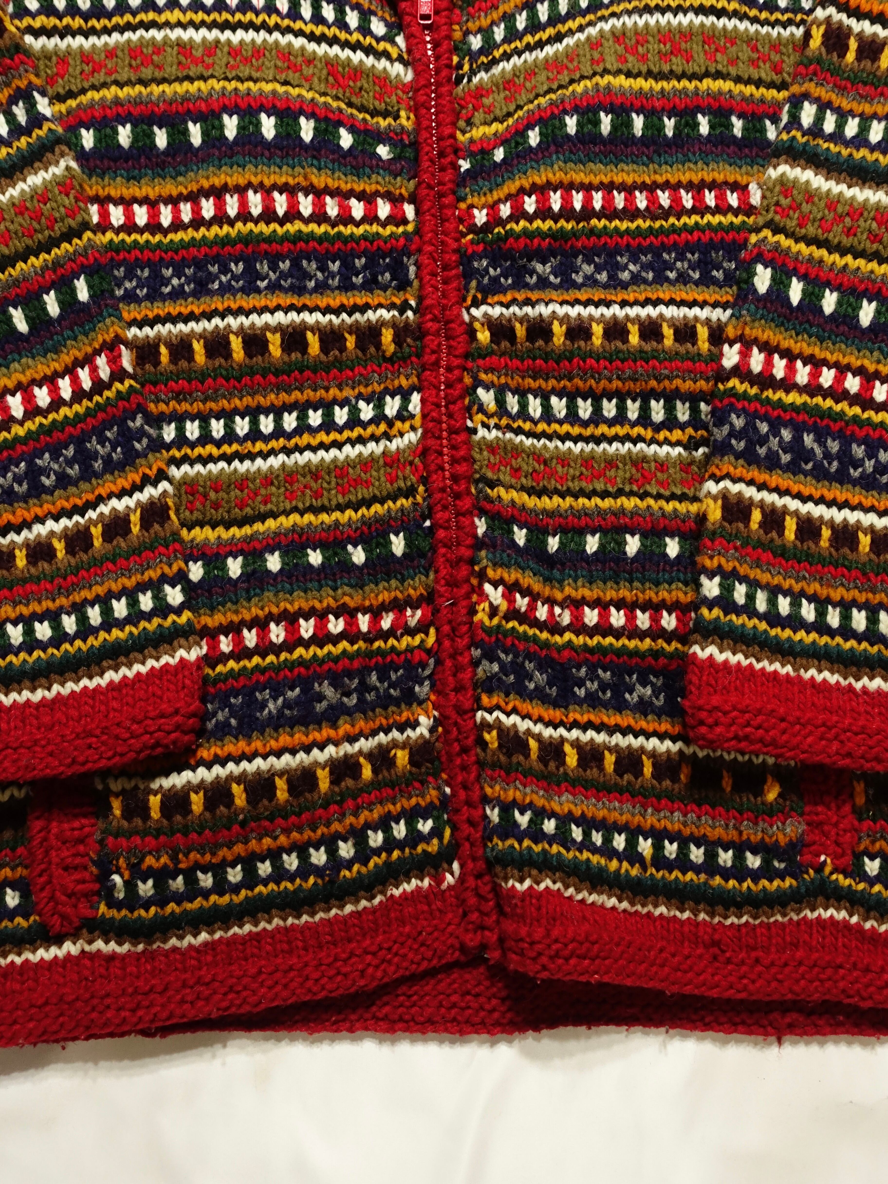 80s~90s Ecuador Hand Knit Wool Zip-up Jacket