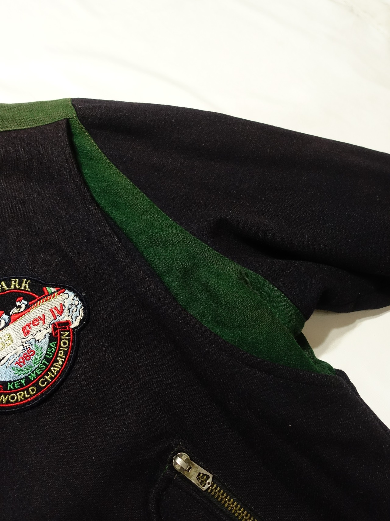 特に目を引くのは、胸元に施された凝った刺繍ワッペン。「WORLD CHAMPION」の文字が入っており、ポールアンドシャークの「コンペティション」ラインのものであることが伺えます。
