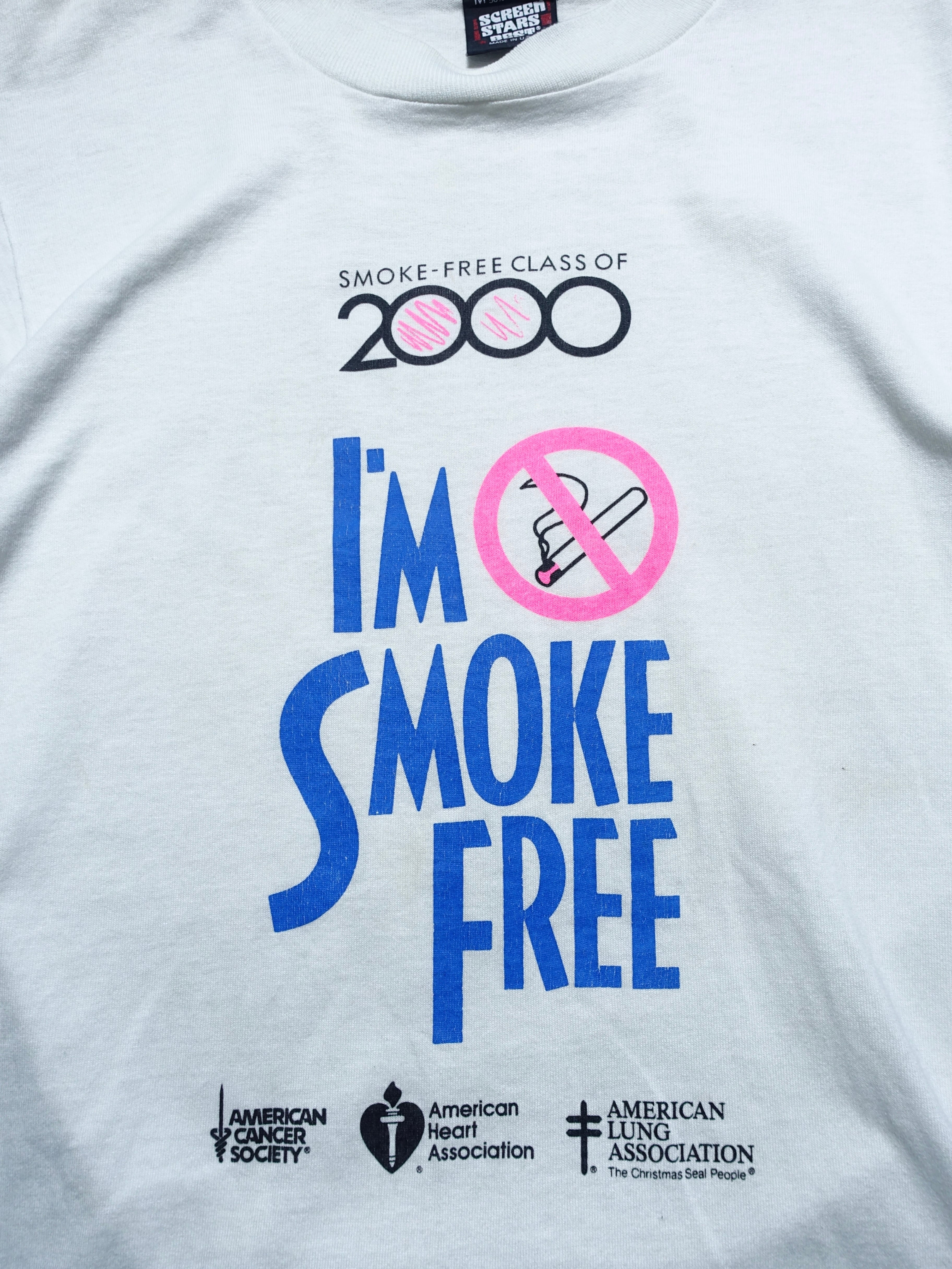 2000年という節目の年に向けて、アメリカの主要な保健機関(対がん協会、心臓協会、肺協会)が合同で展開した「SMOKE-FREE」キャンペーンの一着。