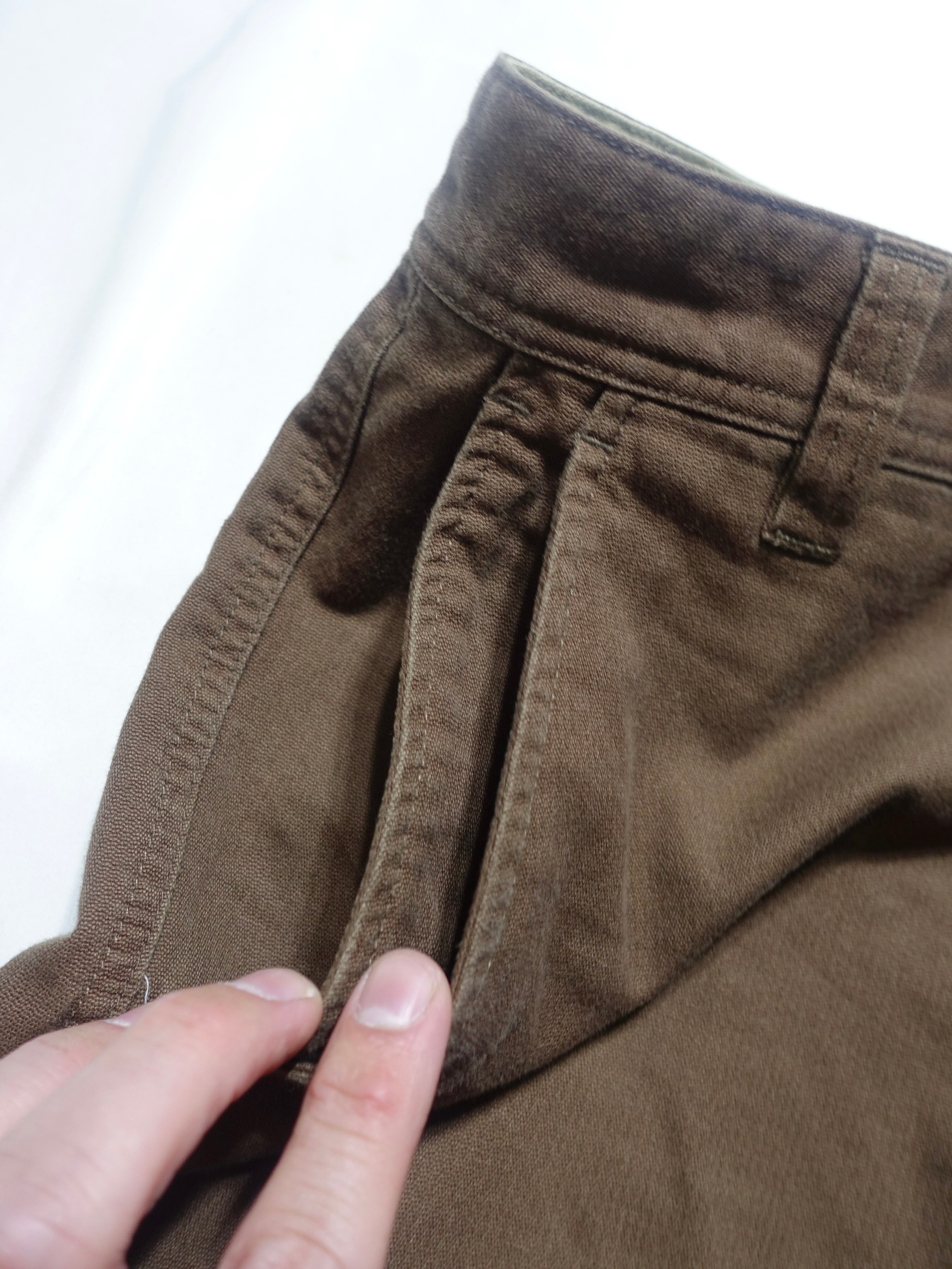 深みのあるブラウンカラーのコットン地は、ガシッとしたタフな質感が魅力。