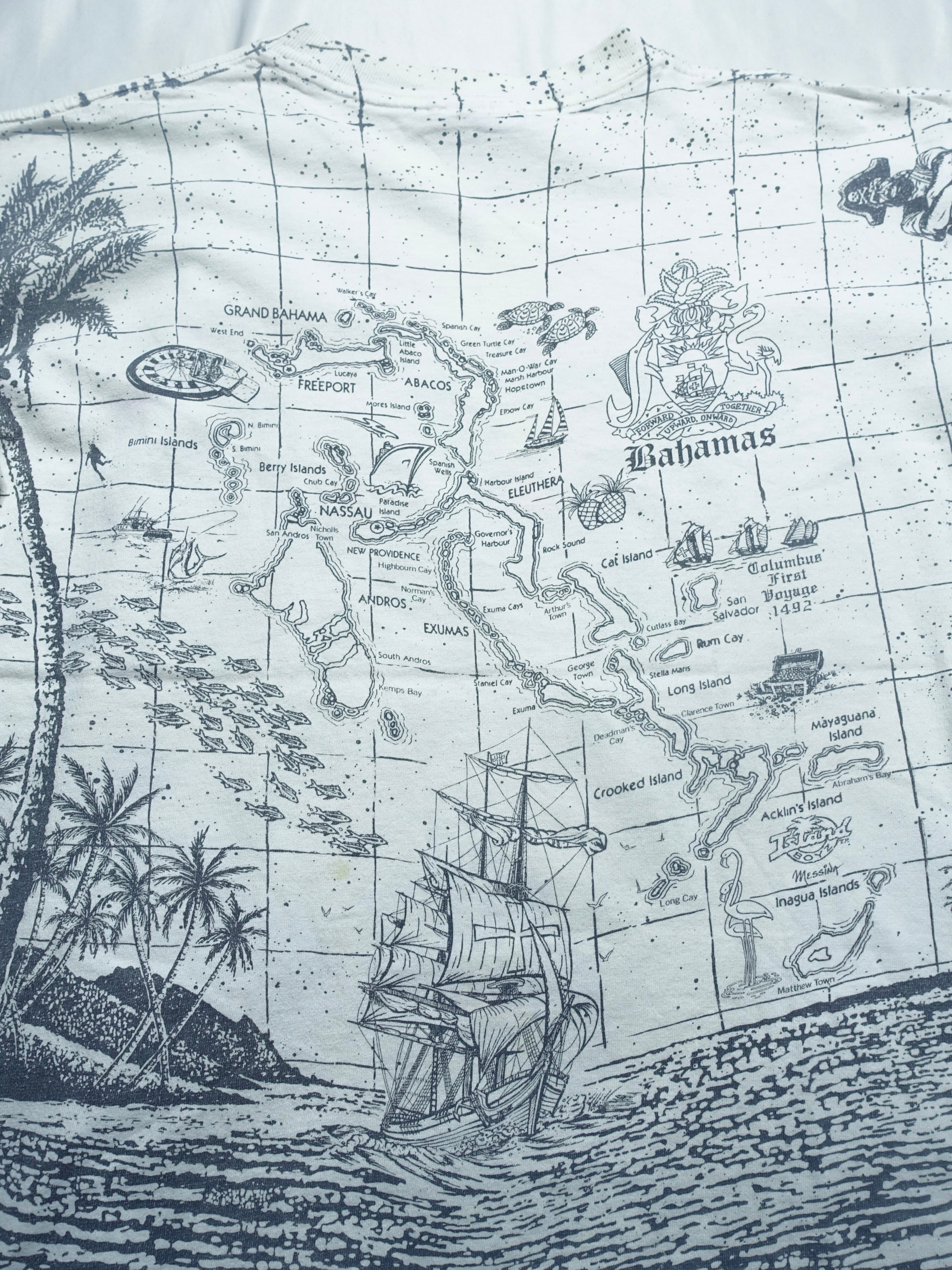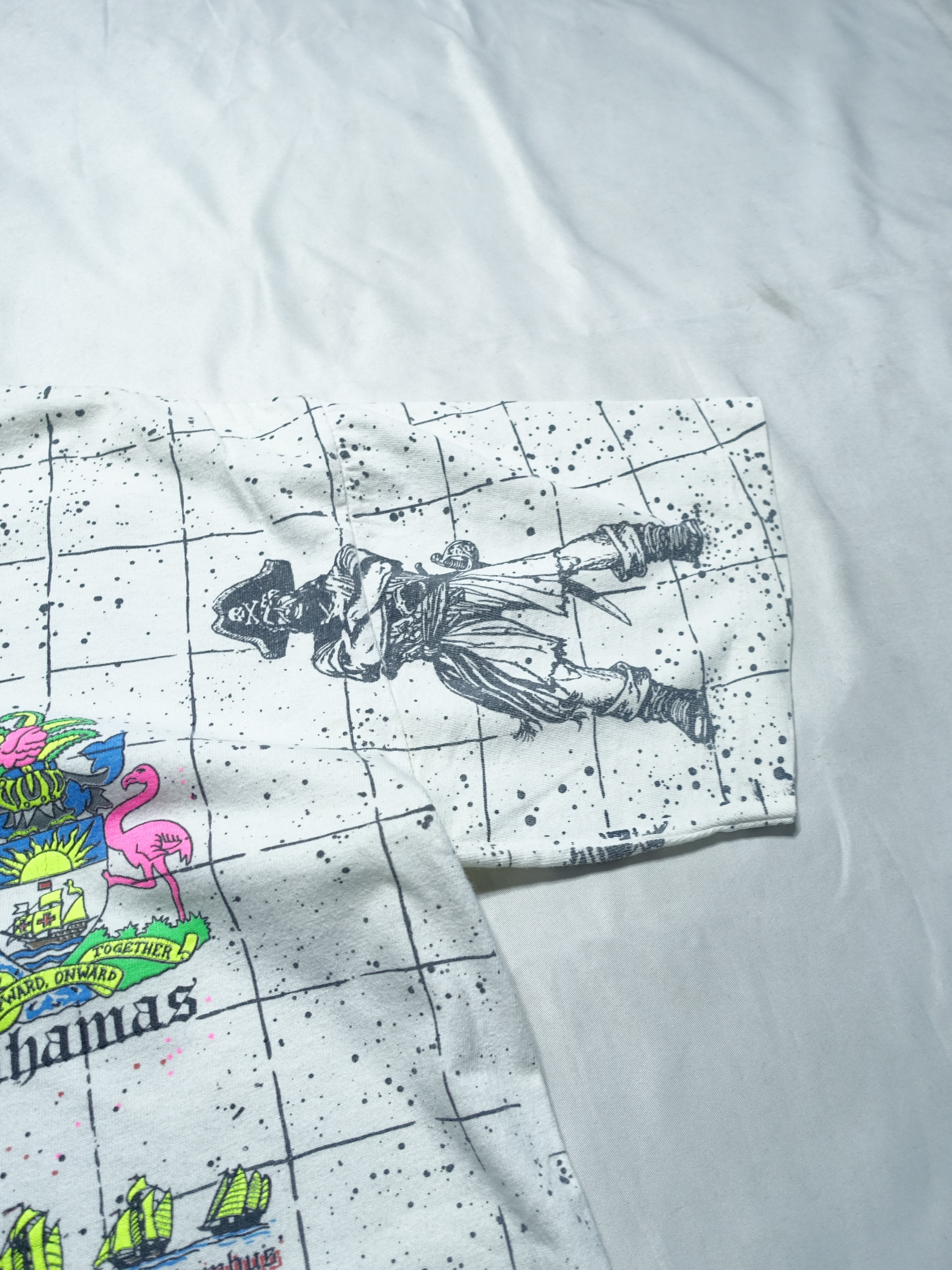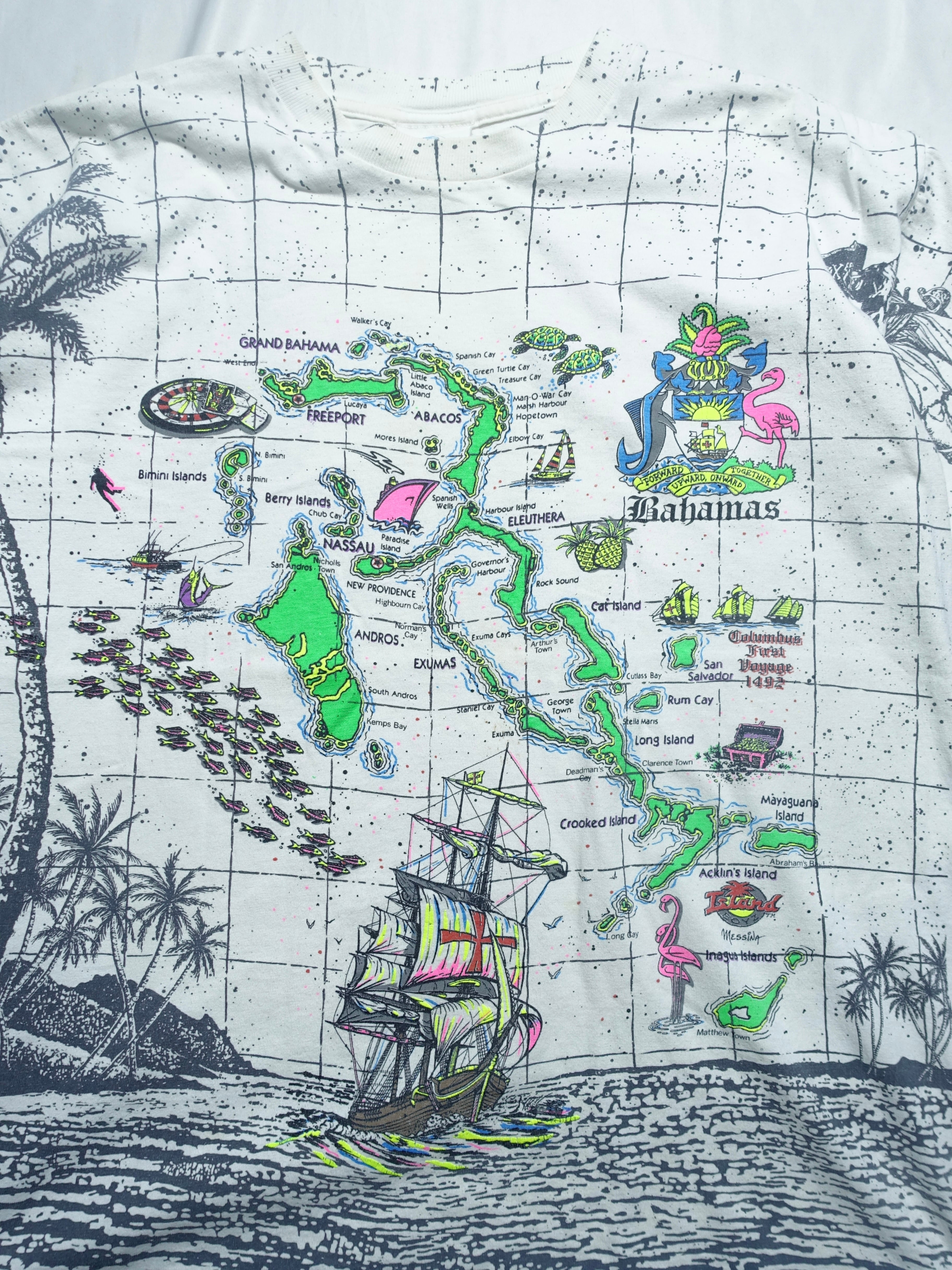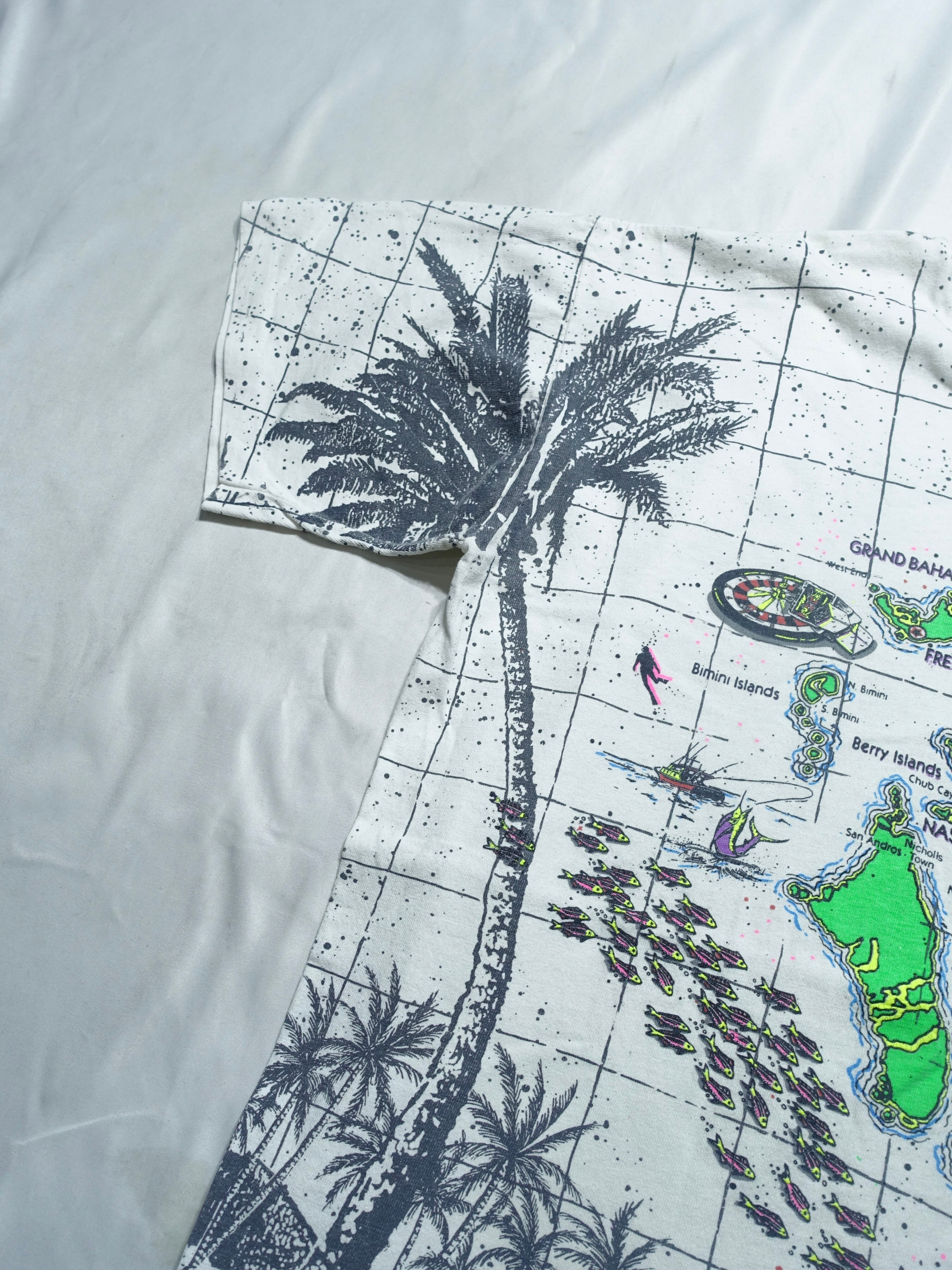 90s BAHAMAS "Map" All Over Print S/S TEE