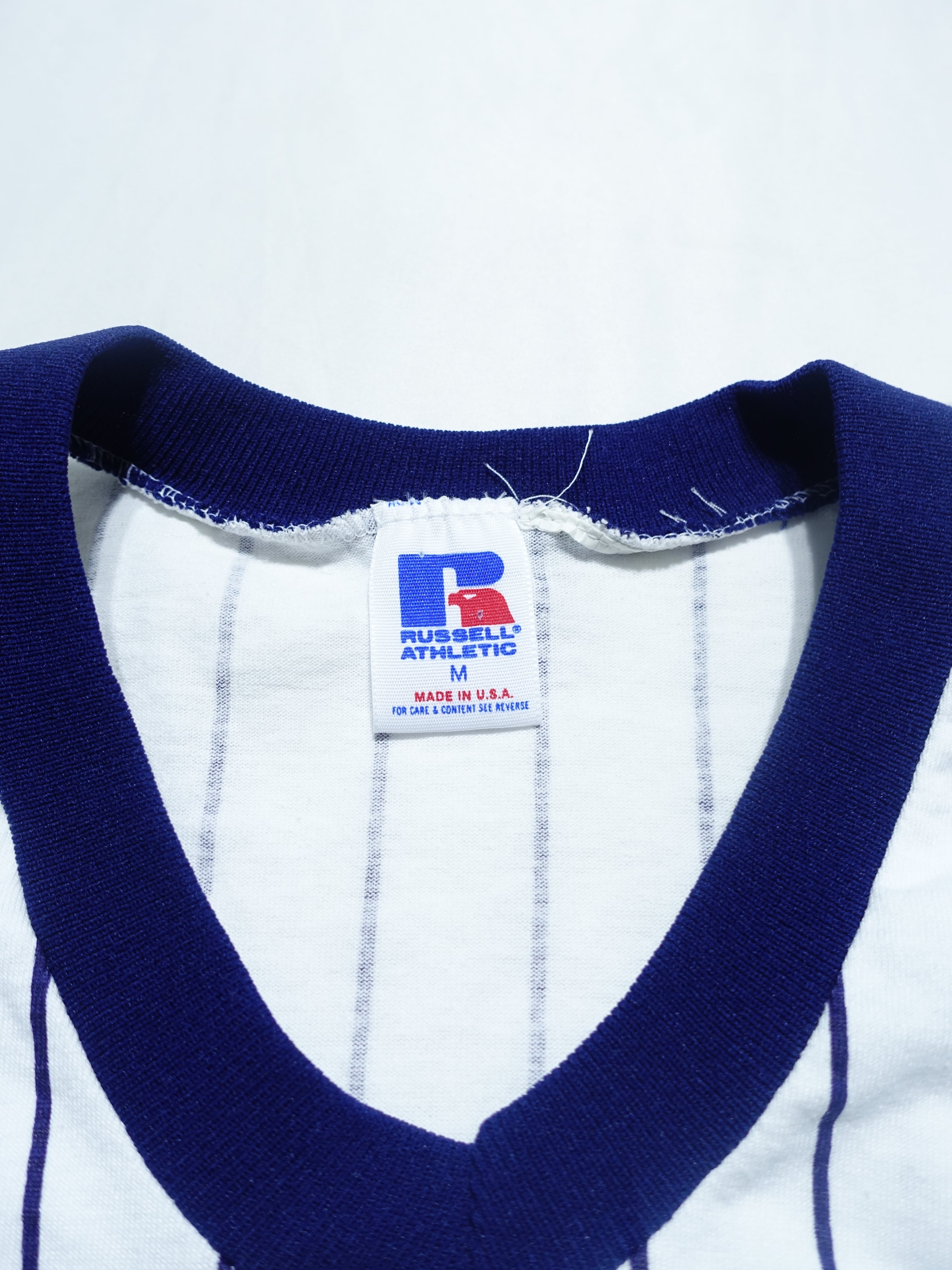 特筆すべきは、当時のメジャーリーグの空気感を纏ったVネックの仕様と、裾に残るサイズタグ。